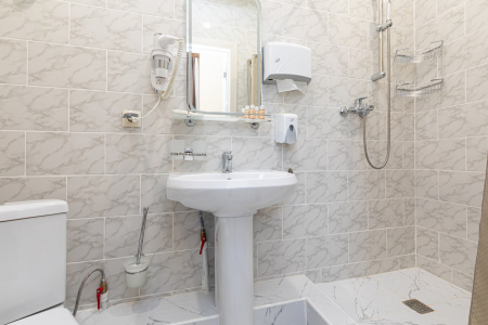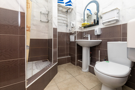 Санузел: С душем, полотенца (4 шт./чел.), фен, сушилка для белья или электрический полотенцесушитель.