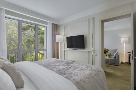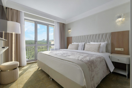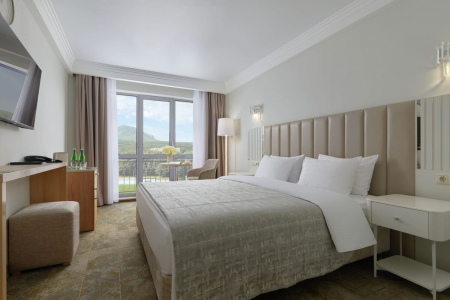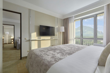 • Просторные номера повышенной комфортности: площадь от 36 до 108 кв.м. с панорамными окнами и интеллектуальной системой климат-контроля.