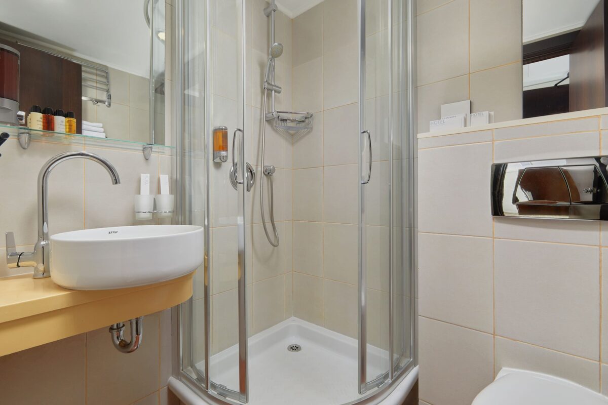 Санузел: Ванная комната с душевой кабиной, косметический набор.