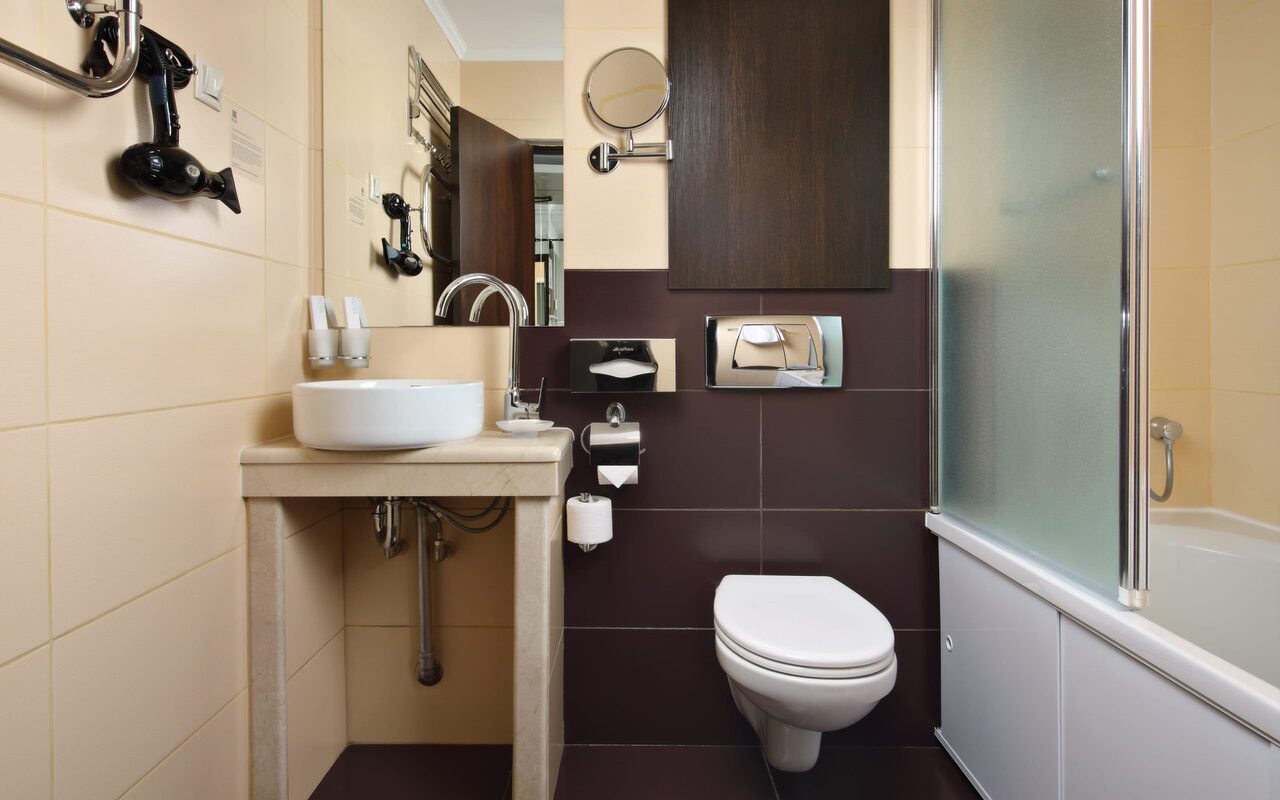 Санузел: Ванная комната с ванной или душевой кабиной, косметический набор.