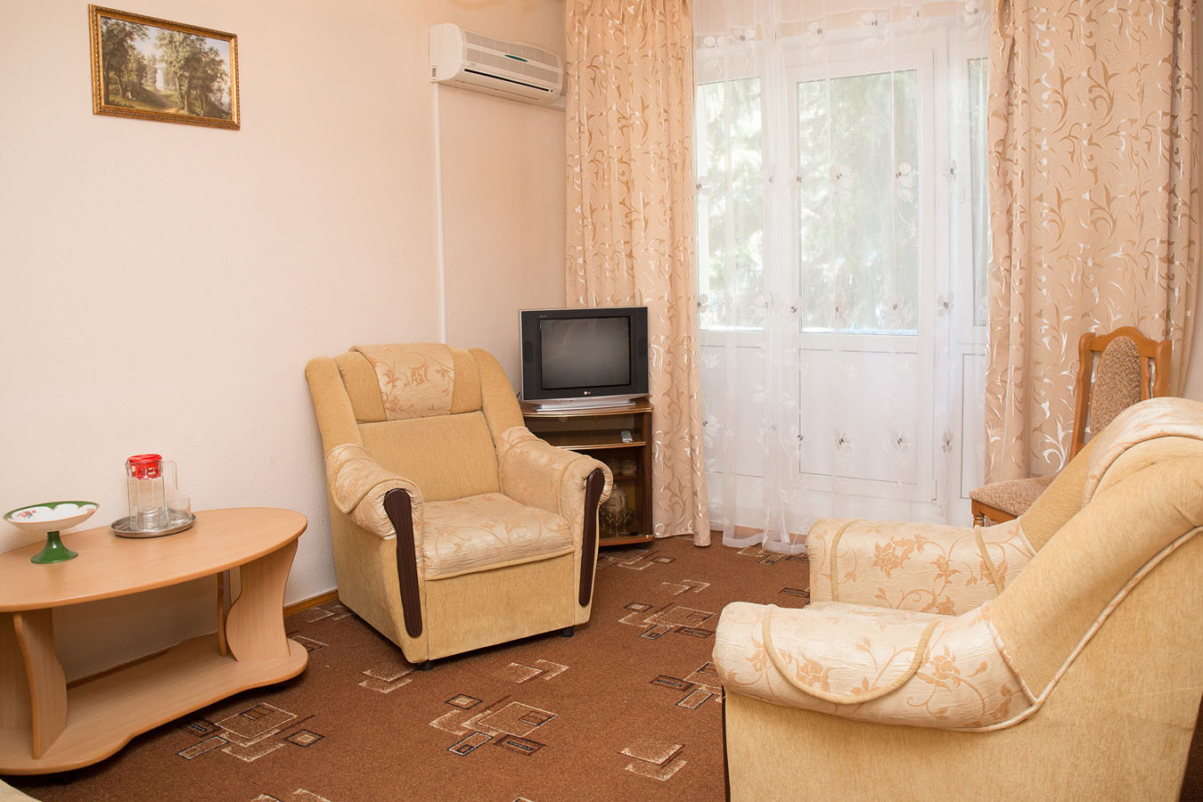 Отдельно расположенный корпус категории «Люкс» прошел сертификацию и имеет статус «Три звезды». На территории санатория находится собственный благоустроенный парк и бювет с минеральной водой.