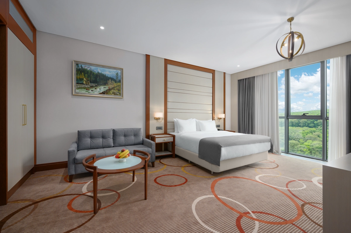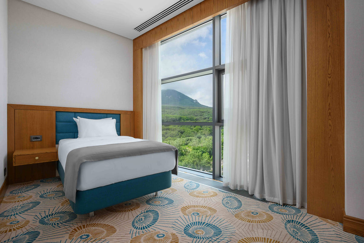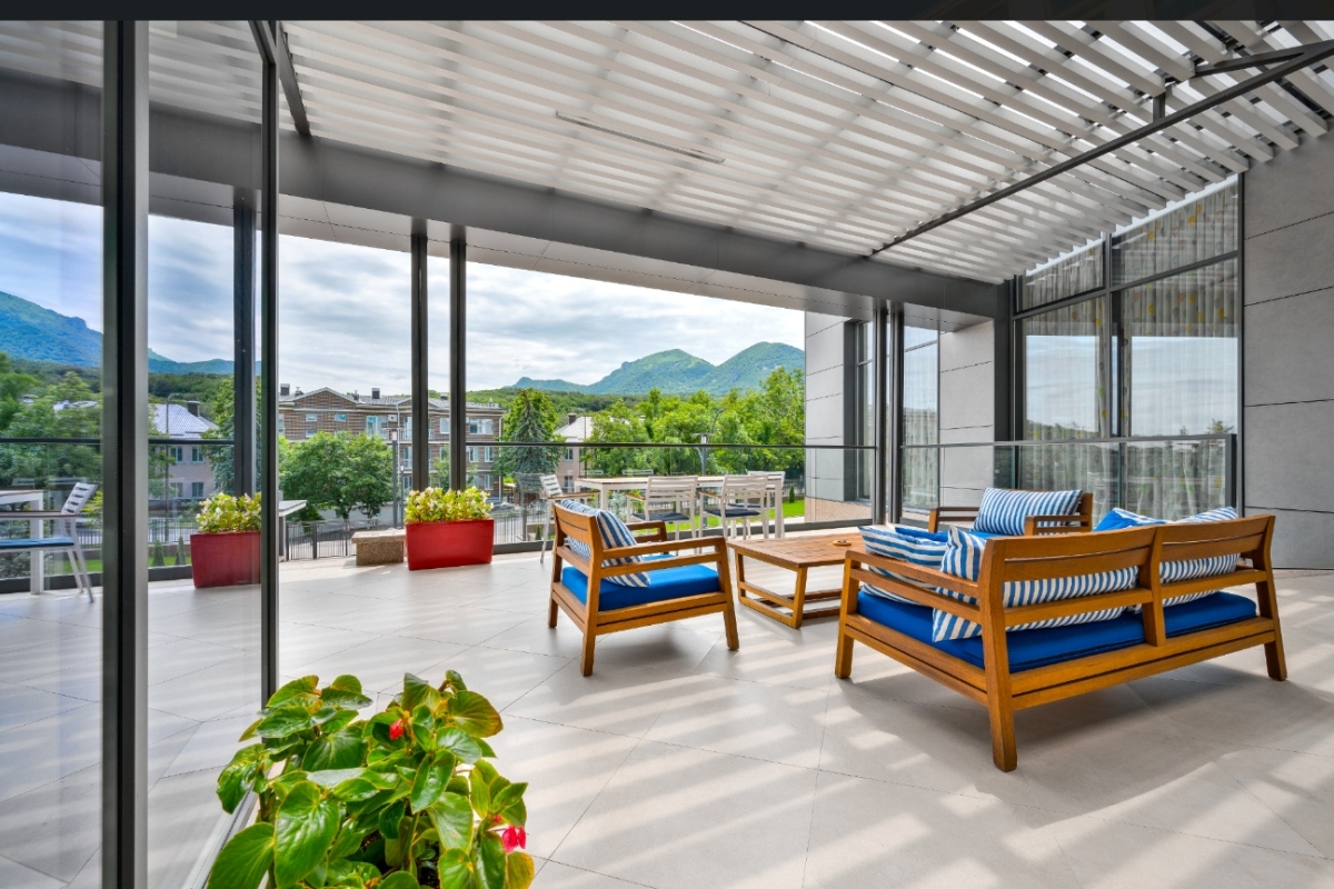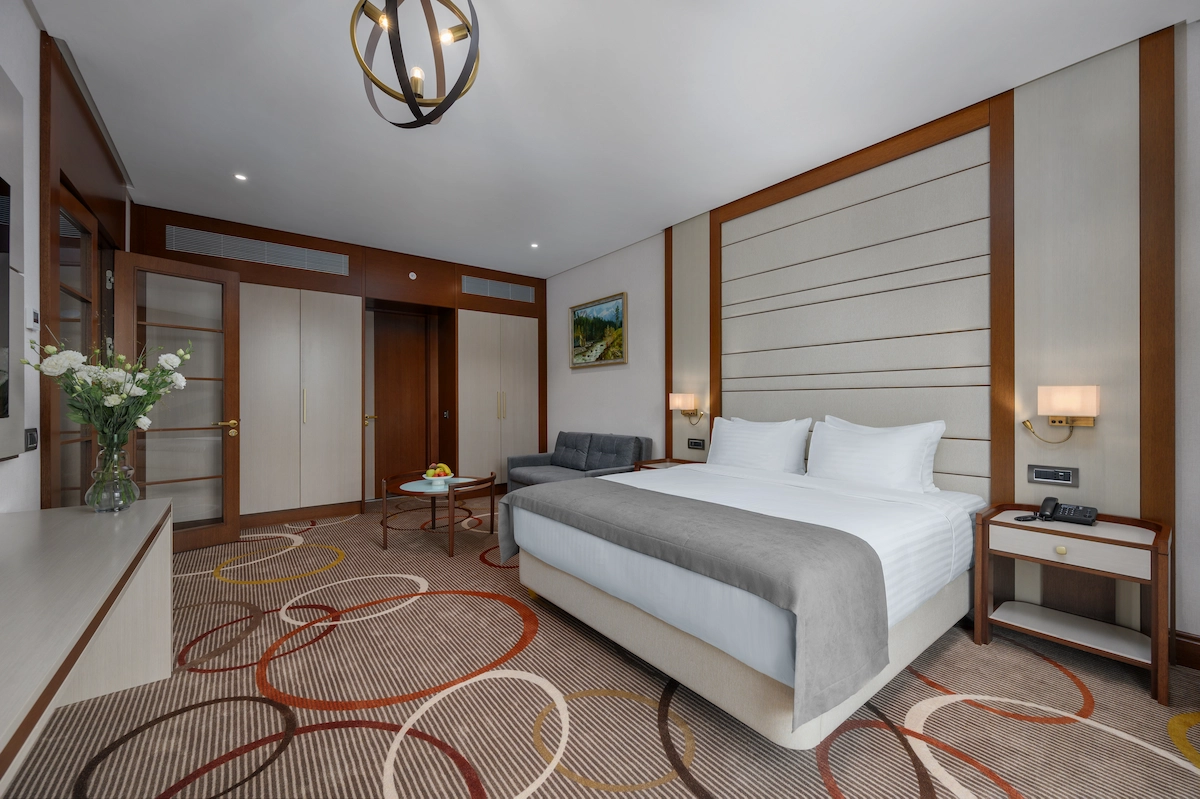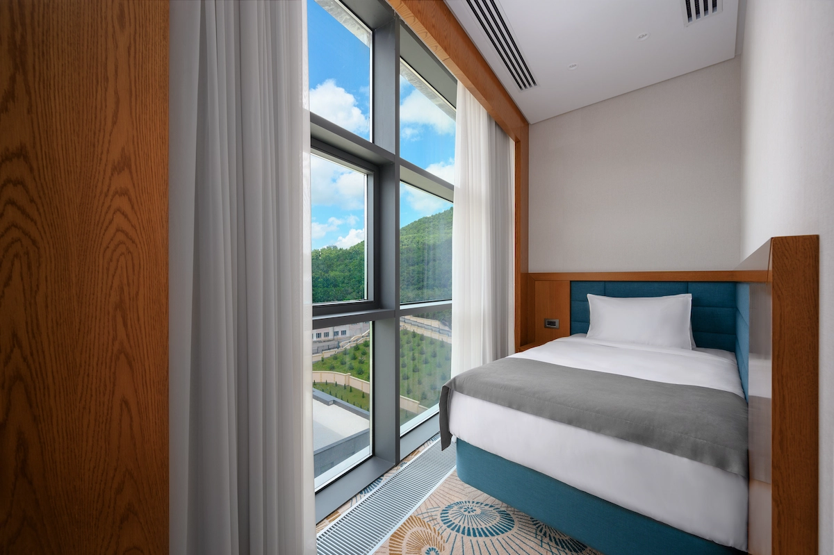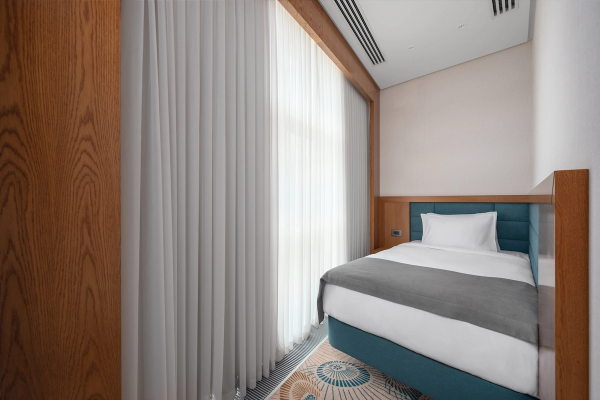 Просторные номера повышенной комфортности: площадь от 36 до 108 кв.м. с панорамными окнами и интеллектуальной системой климат-контроля.