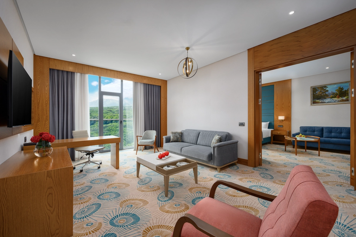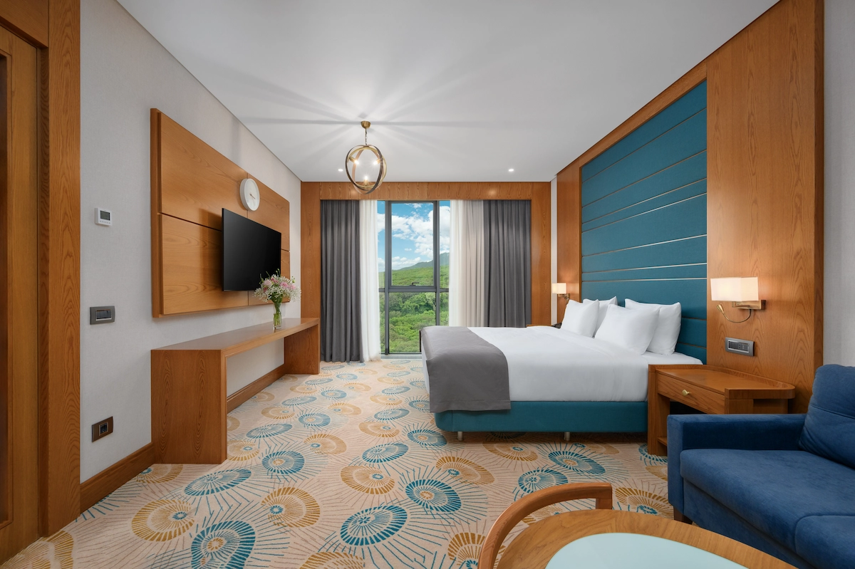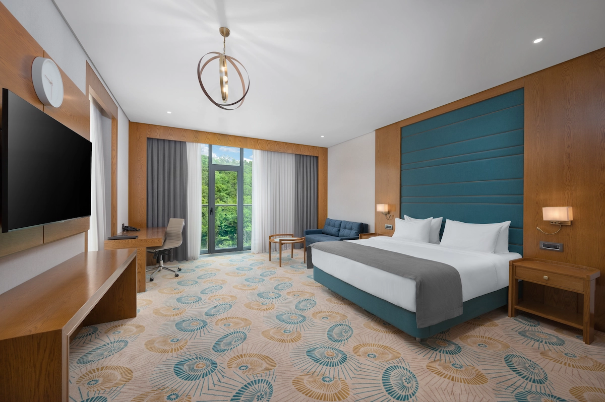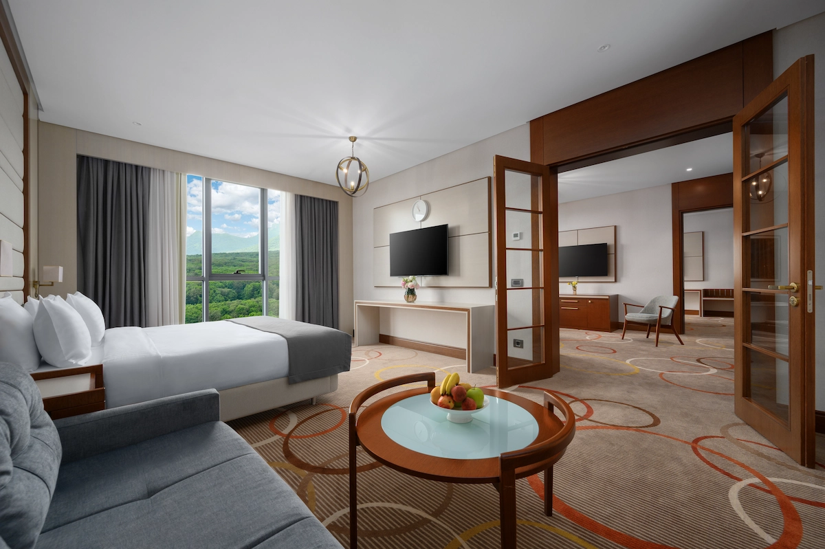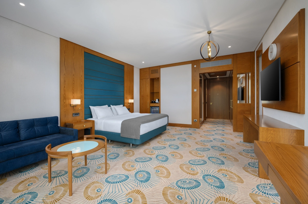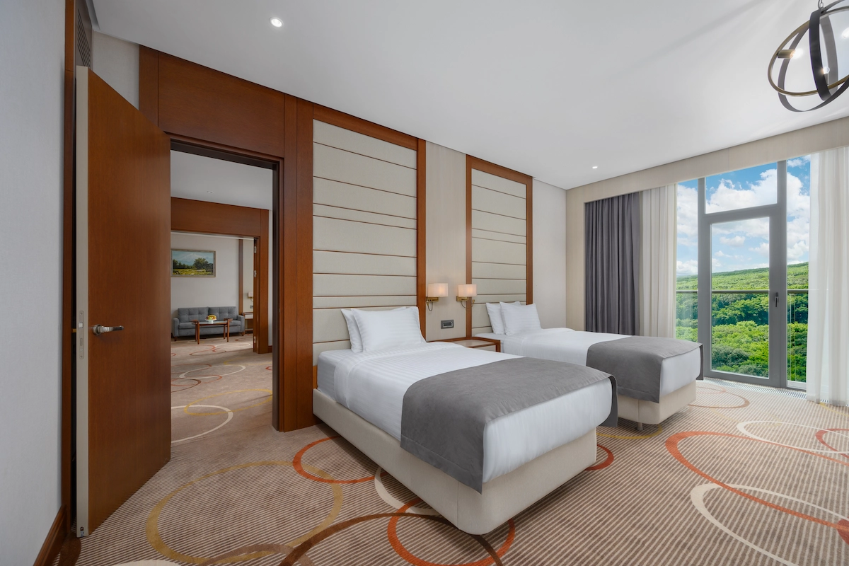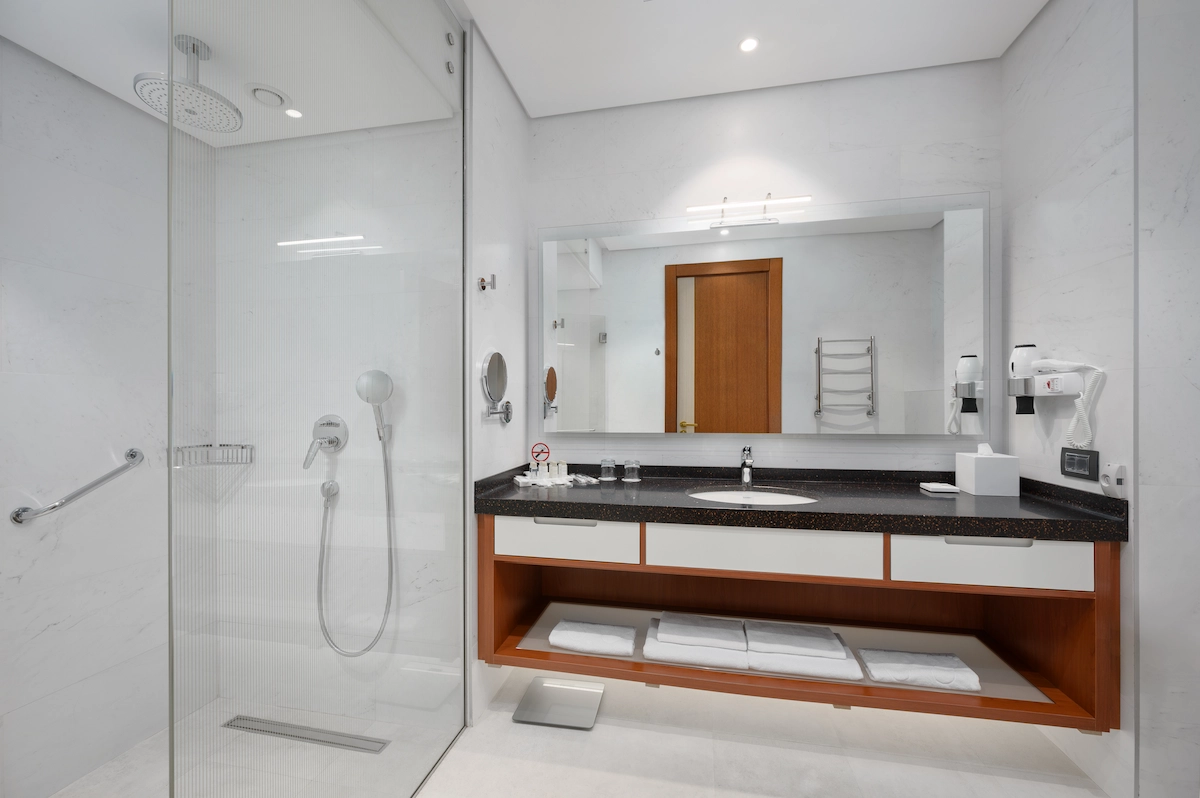 Просторные номера повышенной комфортности: площадь от 36 до 108 кв.м. с панорамными окнами и интеллектуальной системой климат-контроля.