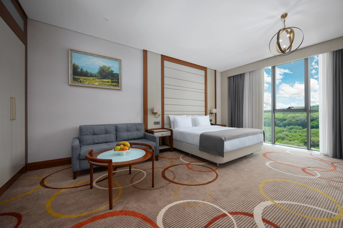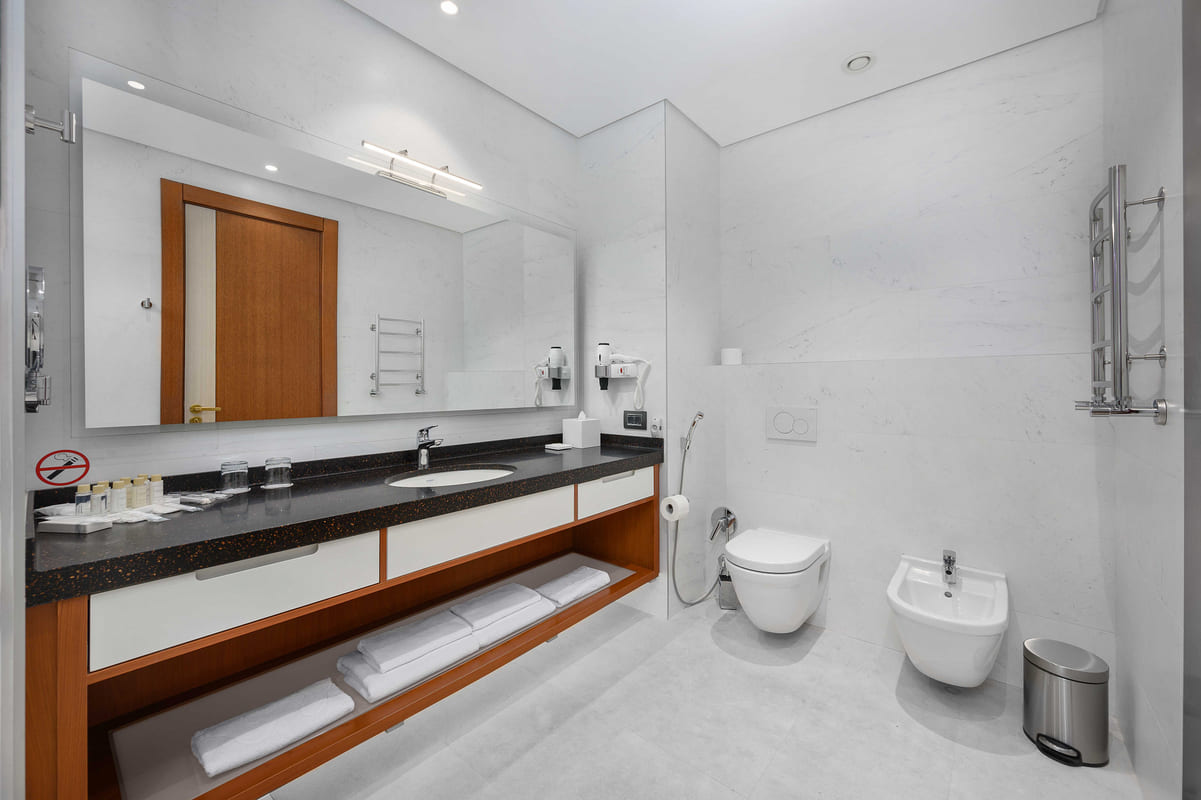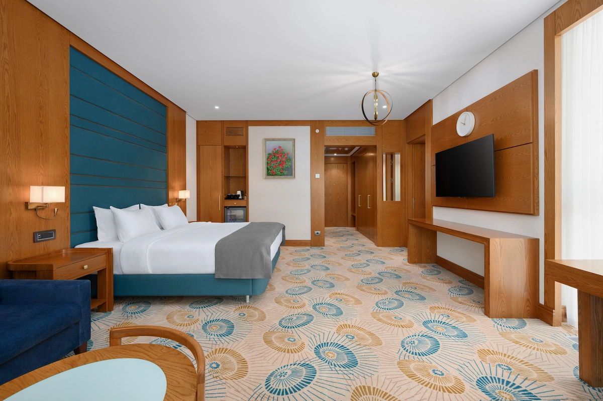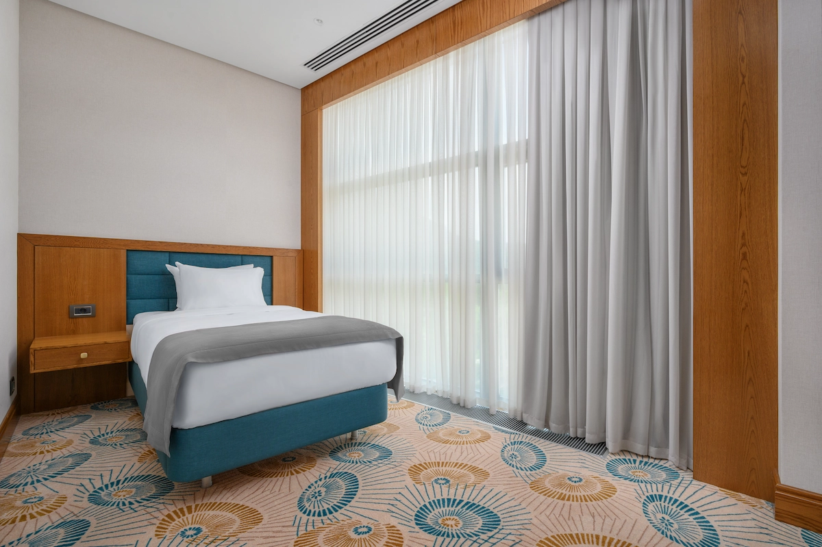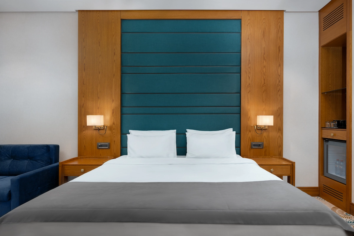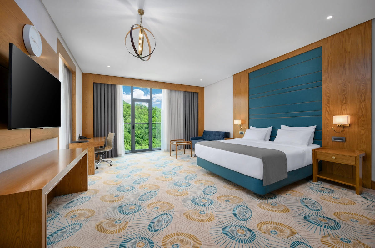 Просторные номера повышенной комфортности: площадь от 36 до 108 кв.м. с панорамными окнами и интеллектуальной системой климат-контроля.