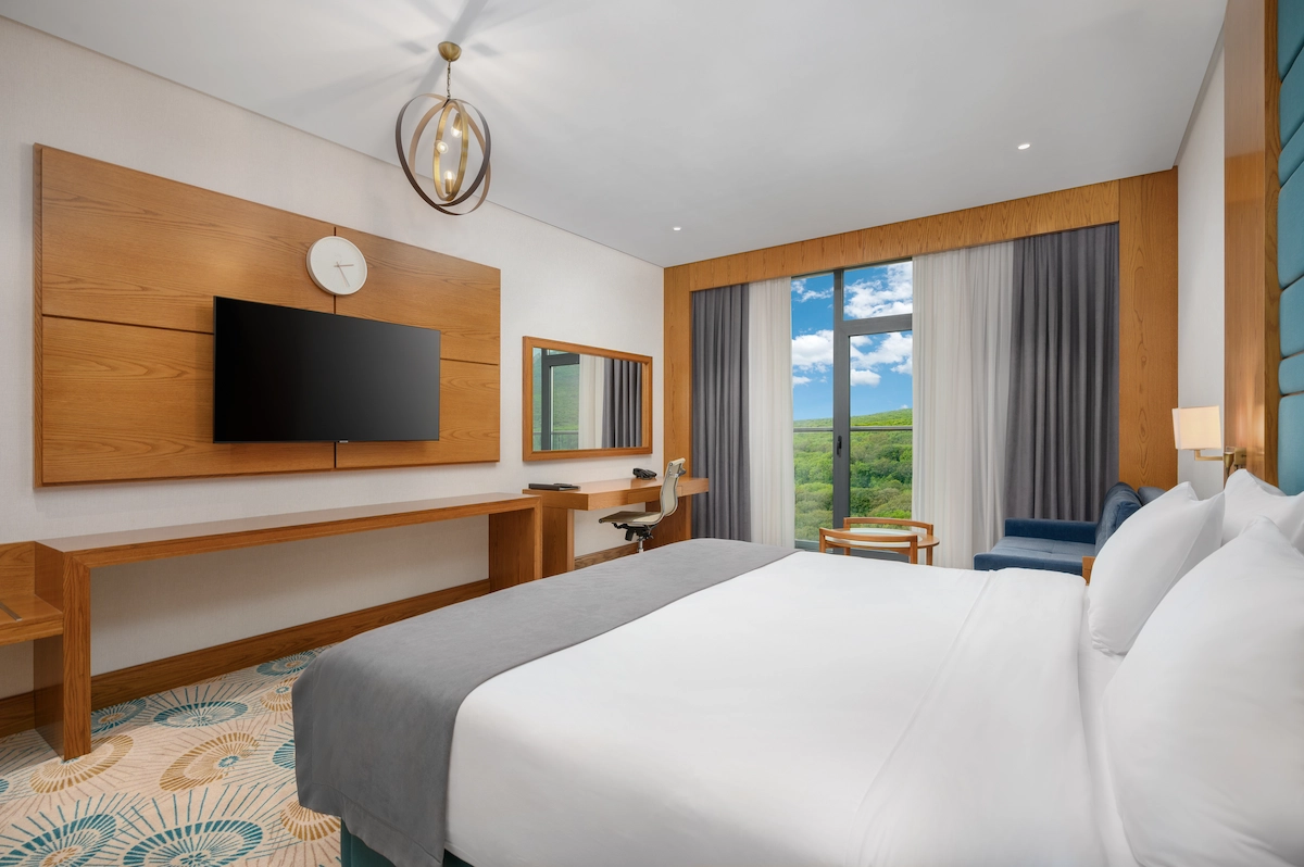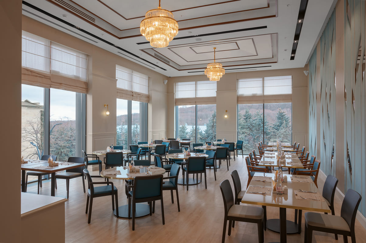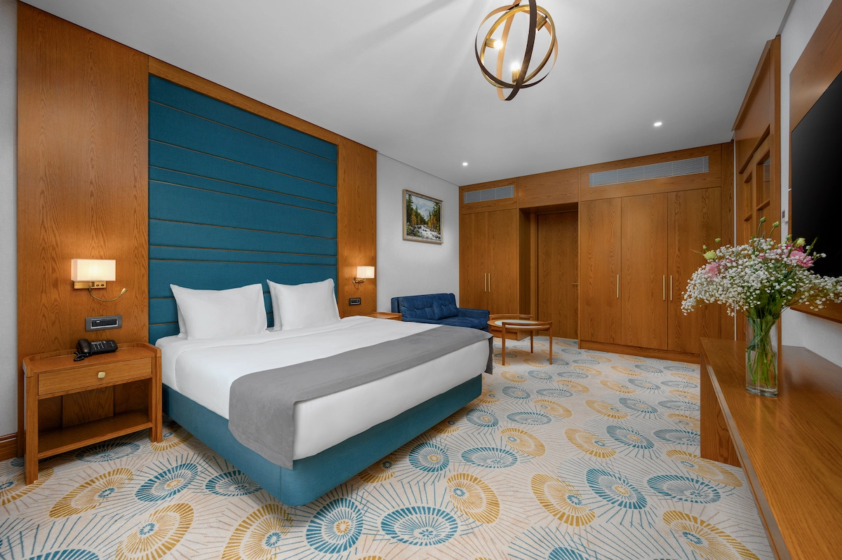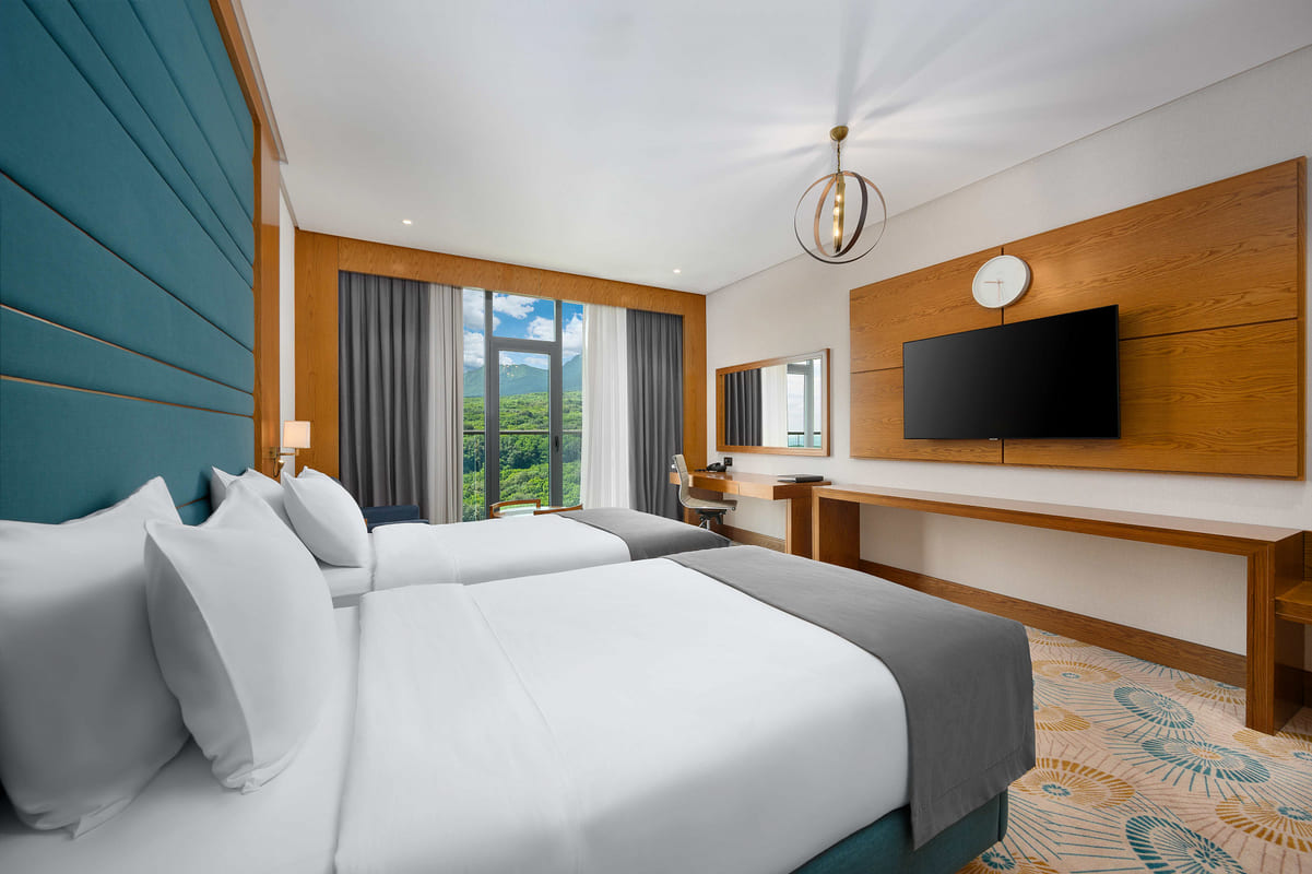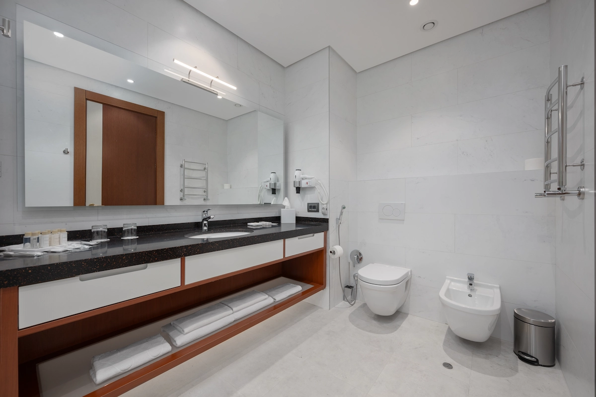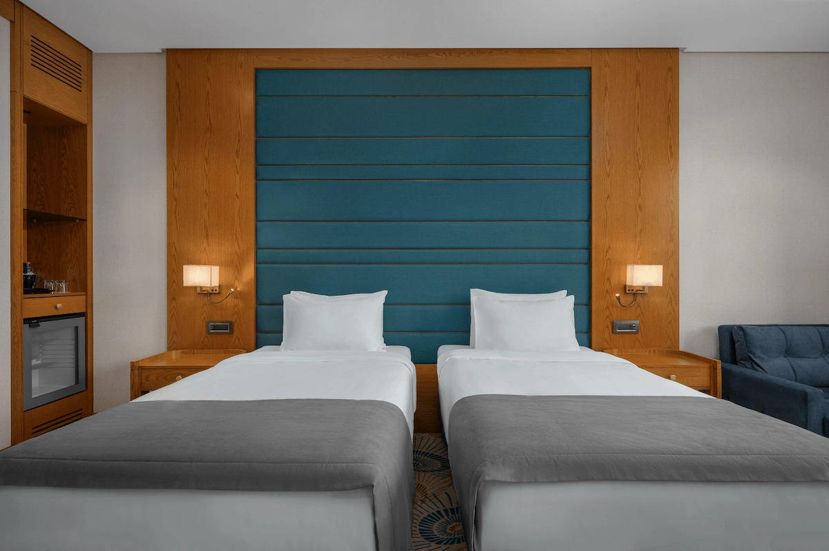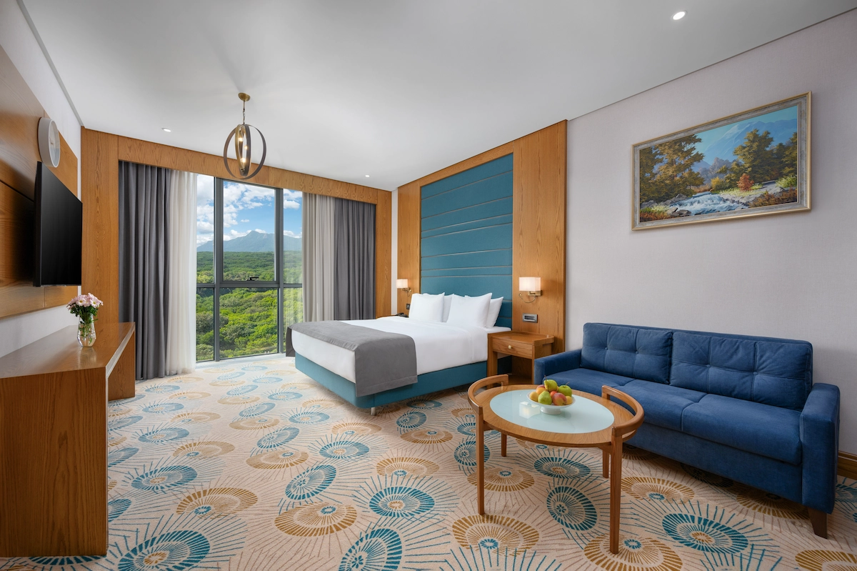 Просторные номера повышенной комфортности: площадь от 36 до 108 кв.м. с панорамными окнами и интеллектуальной системой климат-контроля.