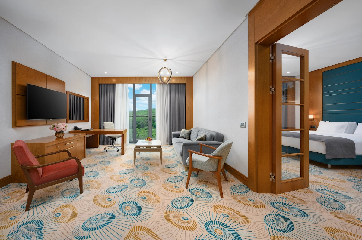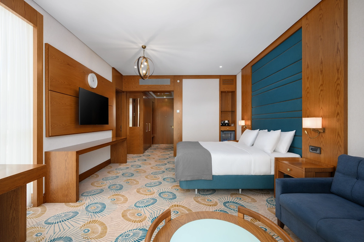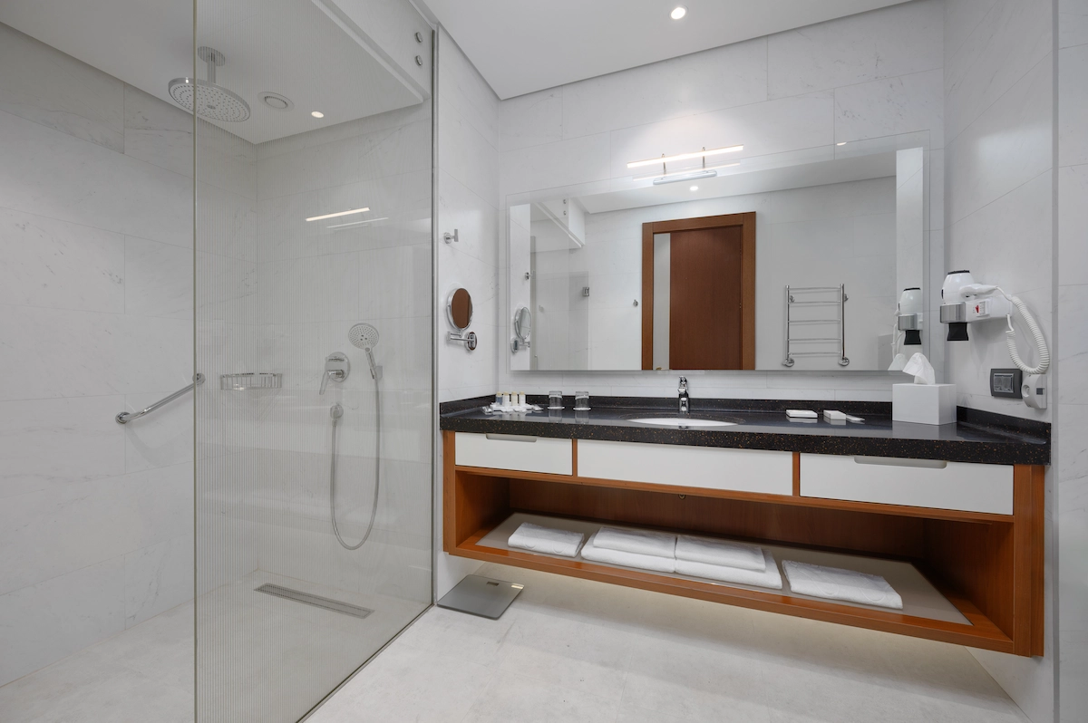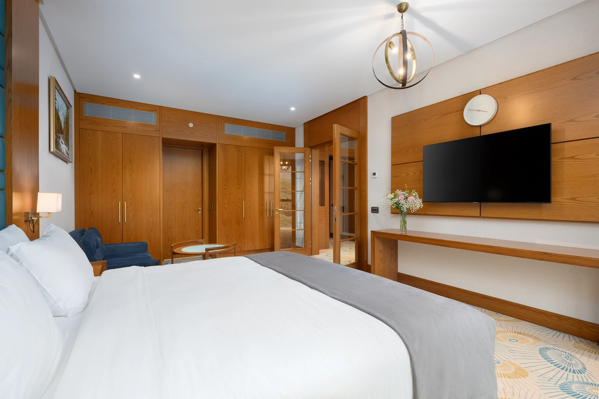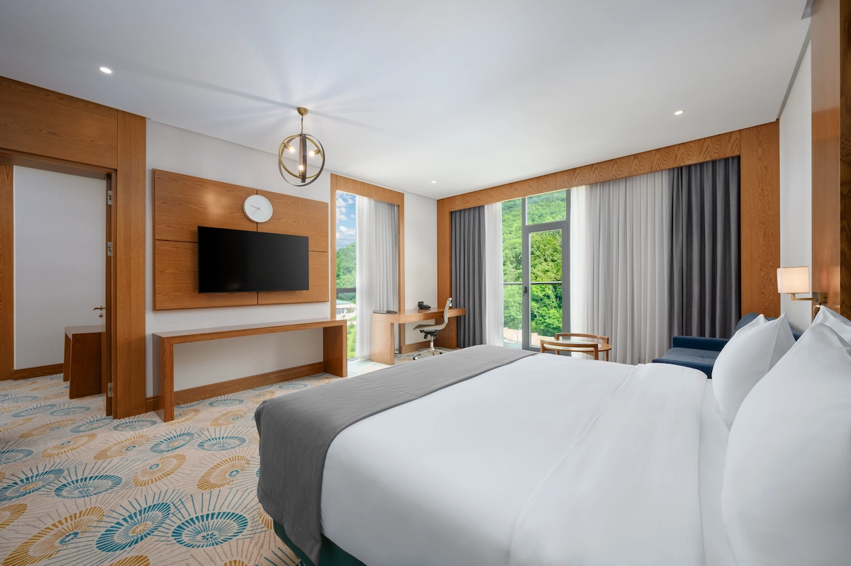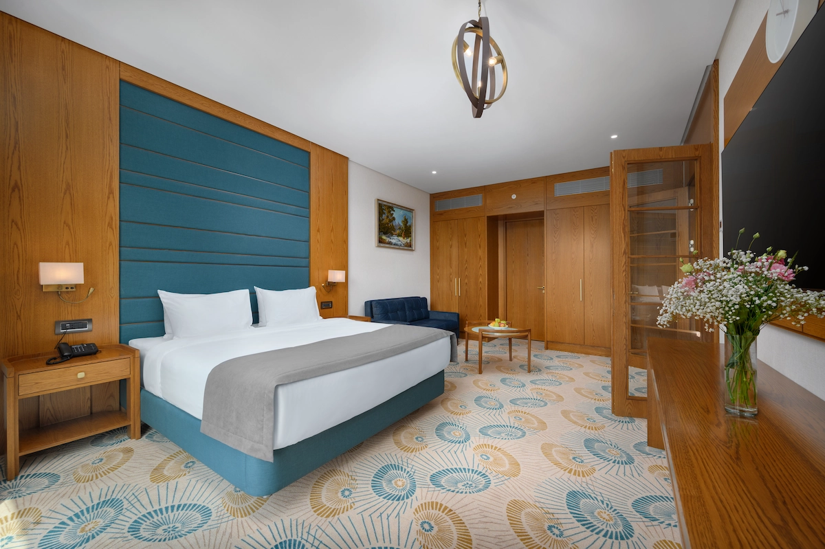 Просторные номера повышенной комфортности: площадь от 36 до 108 кв.м. с панорамными окнами и интеллектуальной системой климат-контроля.