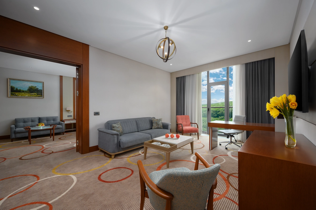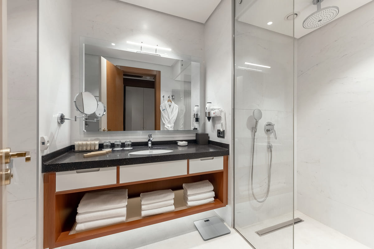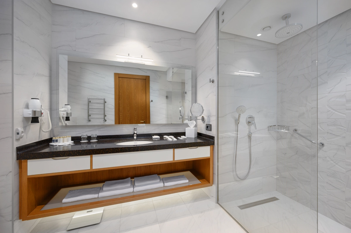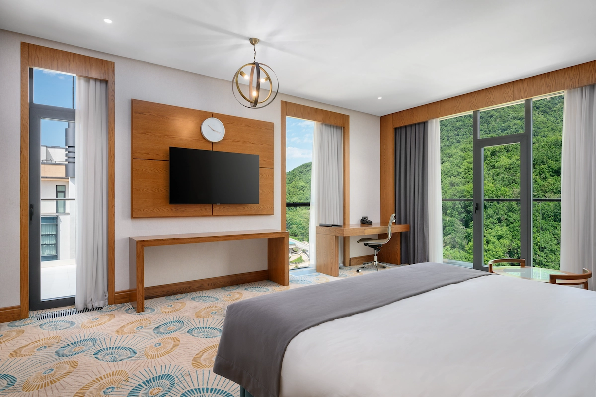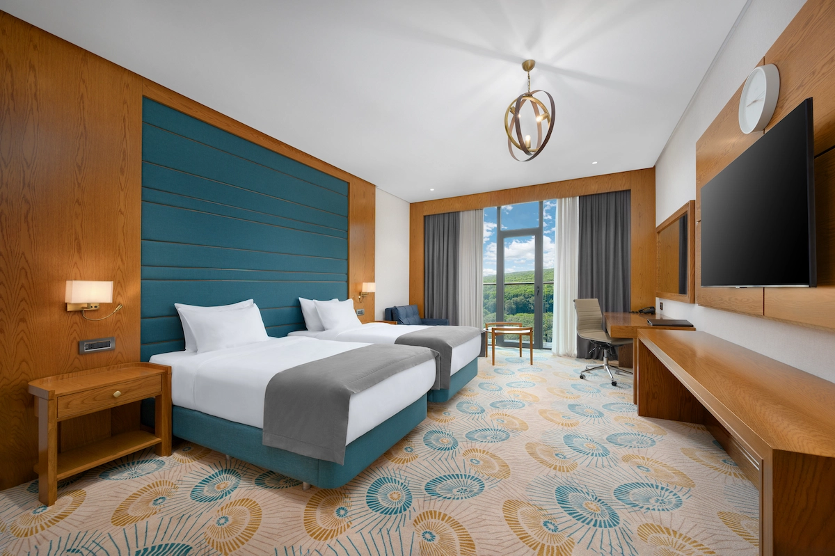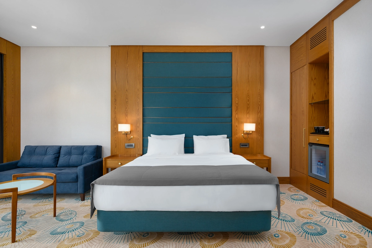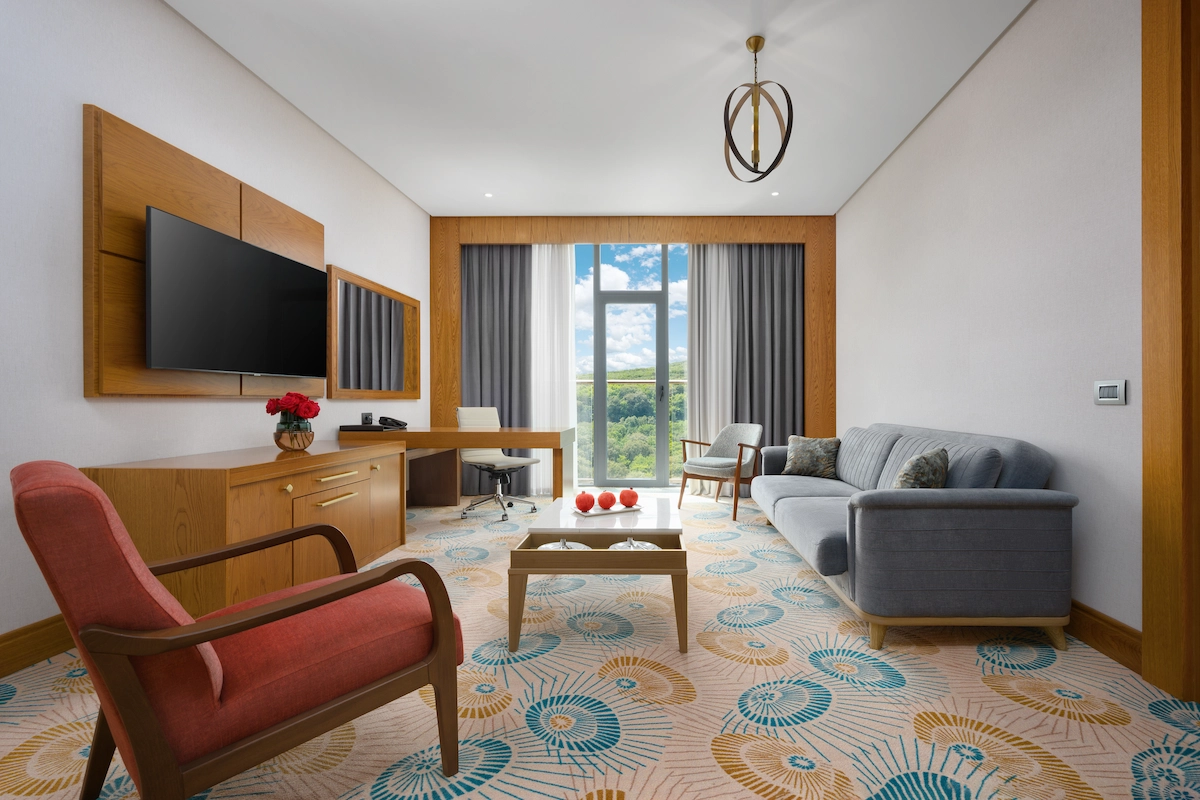 Просторные номера повышенной комфортности: площадь от 36 до 108 кв.м. с панорамными окнами и интеллектуальной системой климат-контроля.