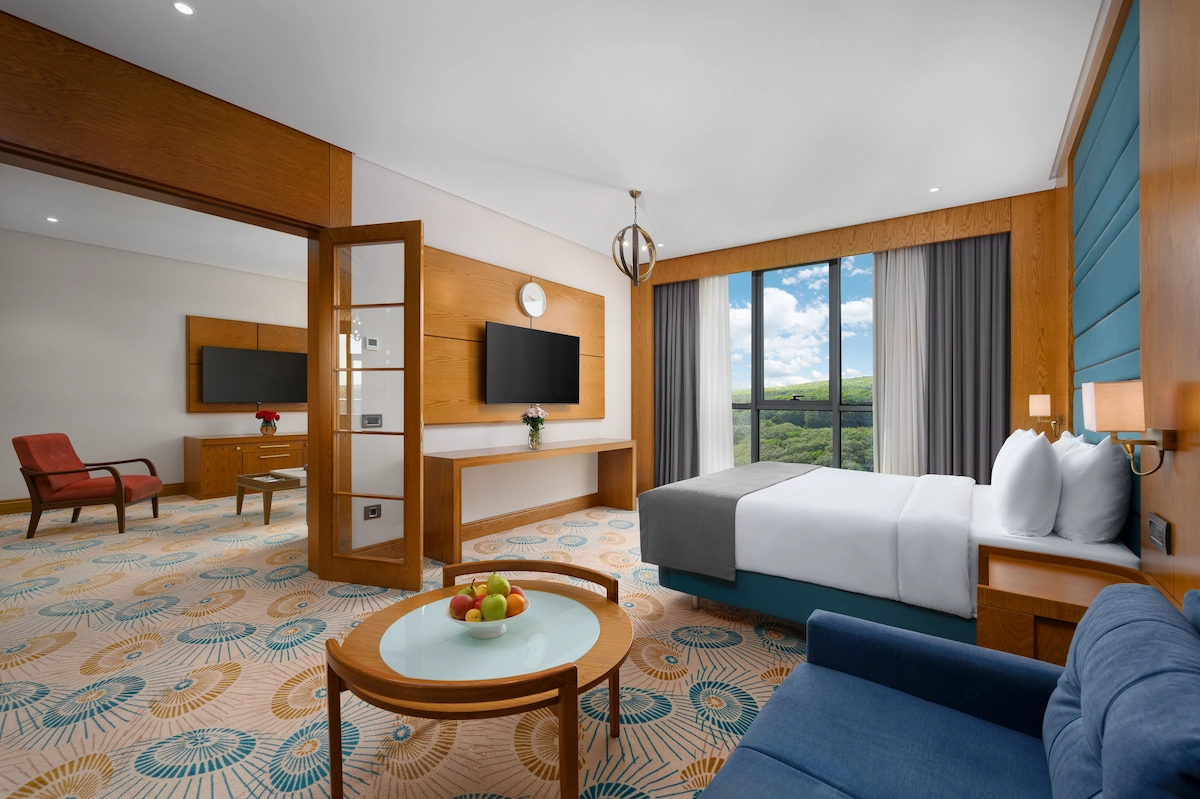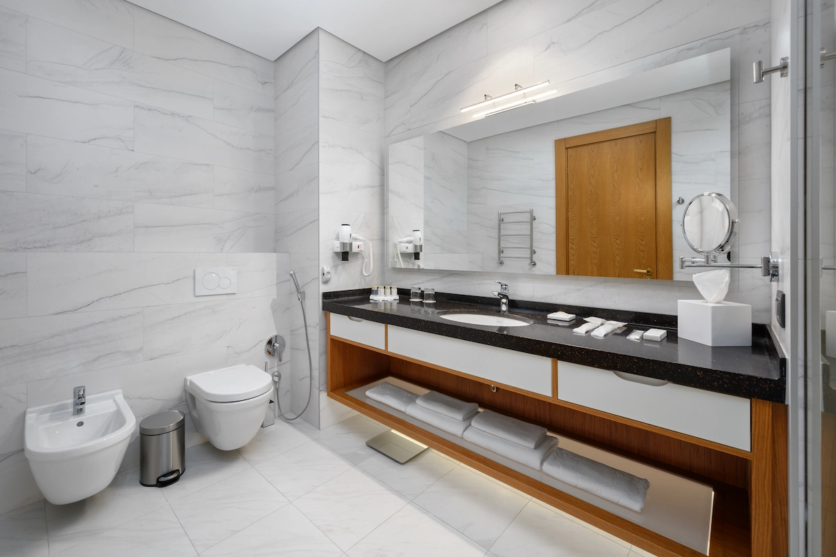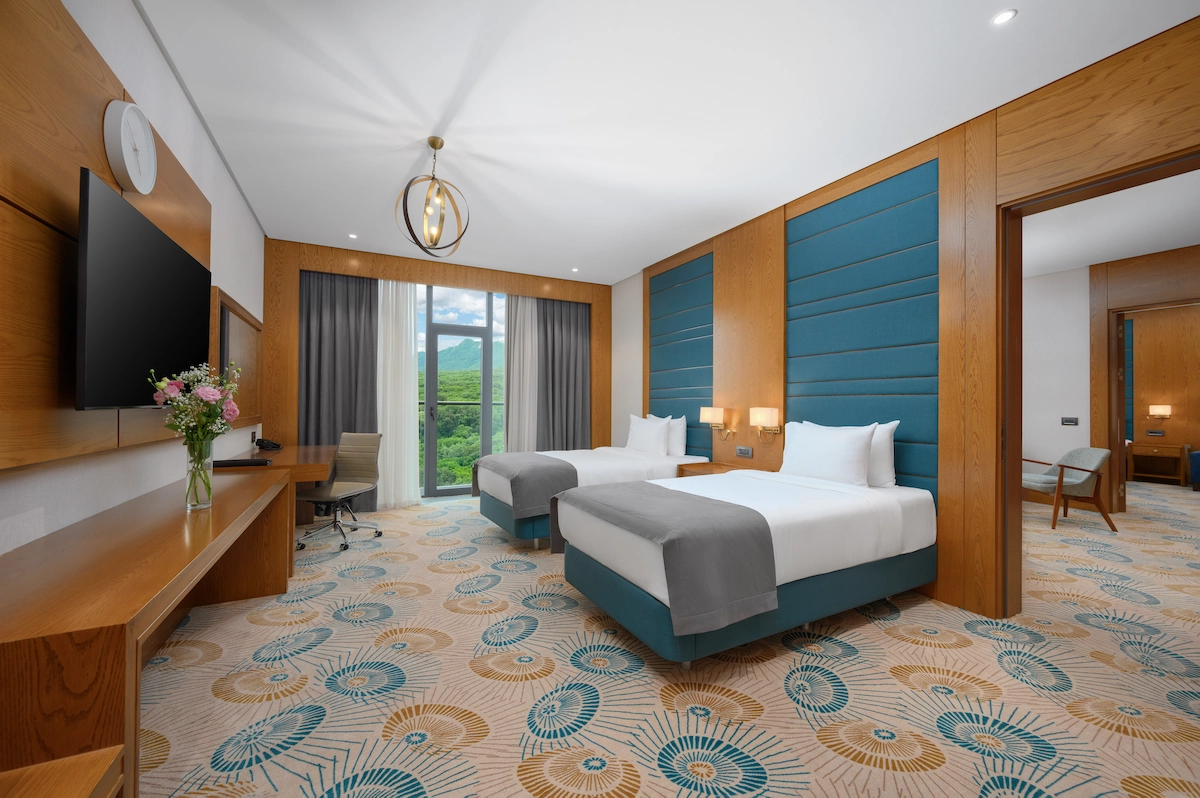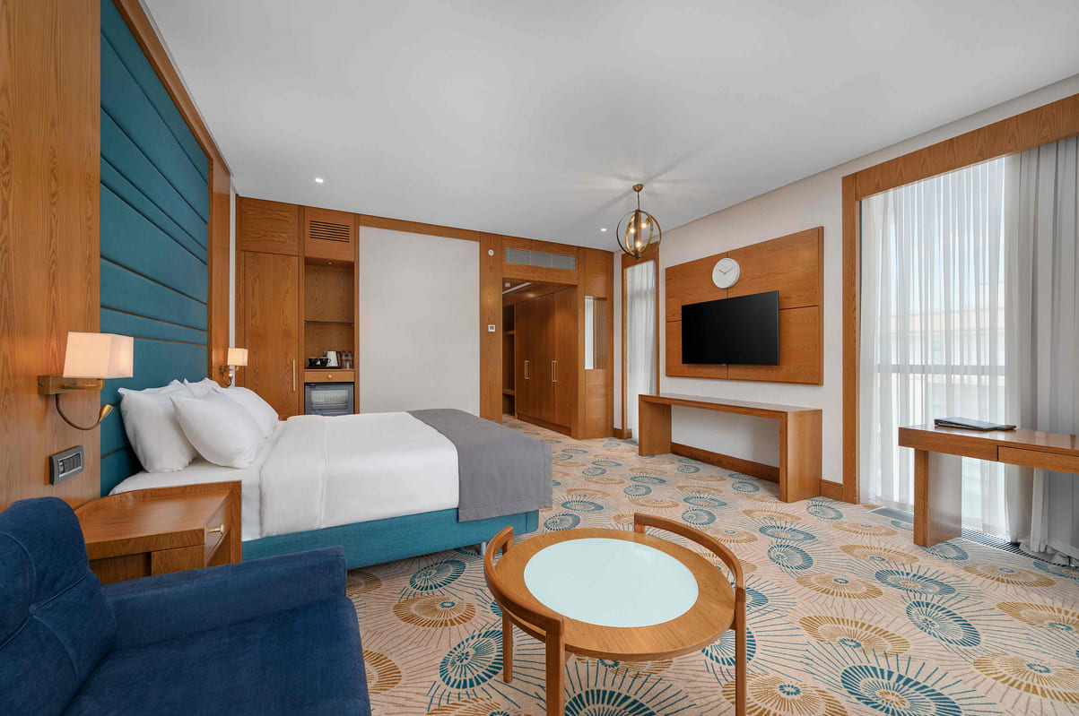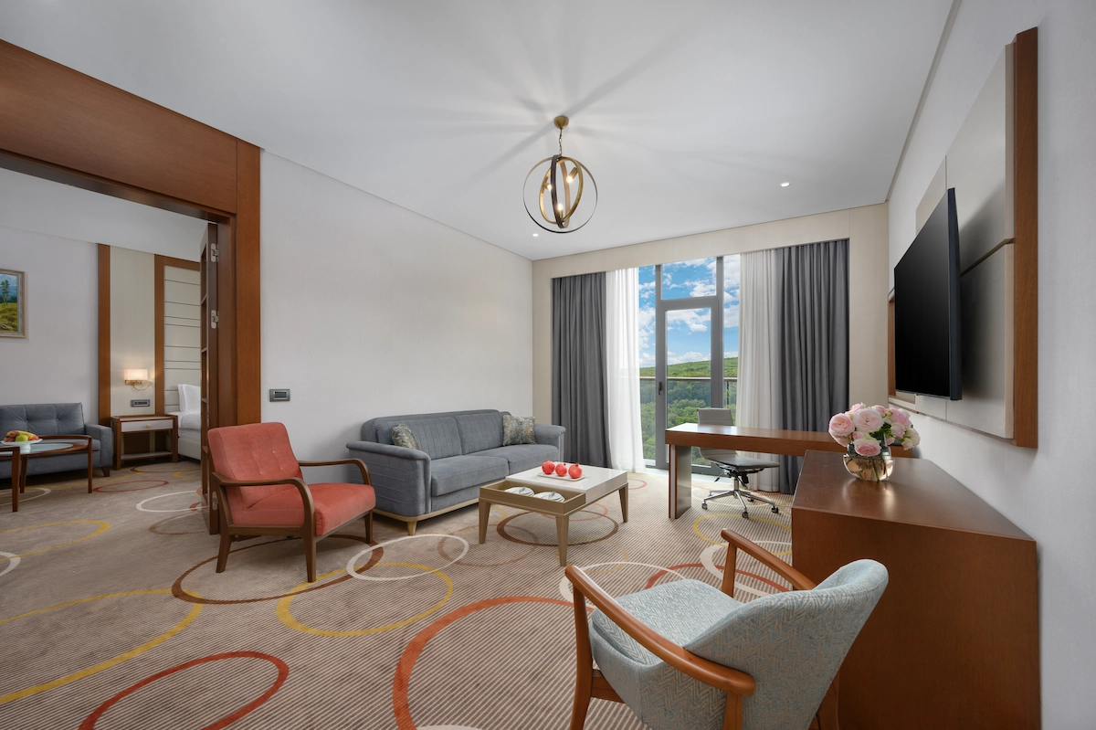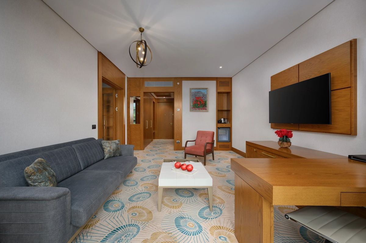 Просторные номера повышенной комфортности: площадь от 36 до 108 кв.м. с панорамными окнами и интеллектуальной системой климат-контроля.