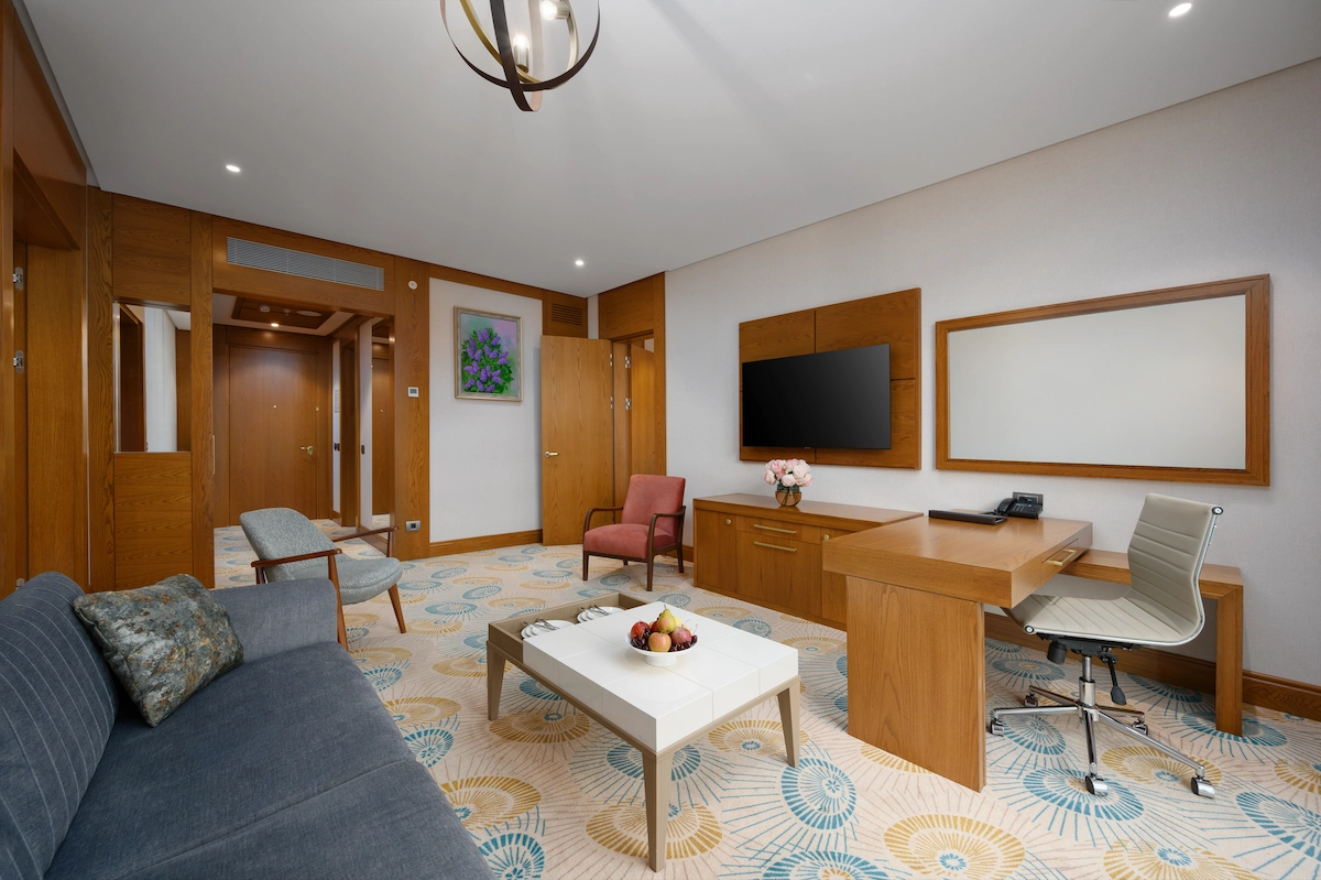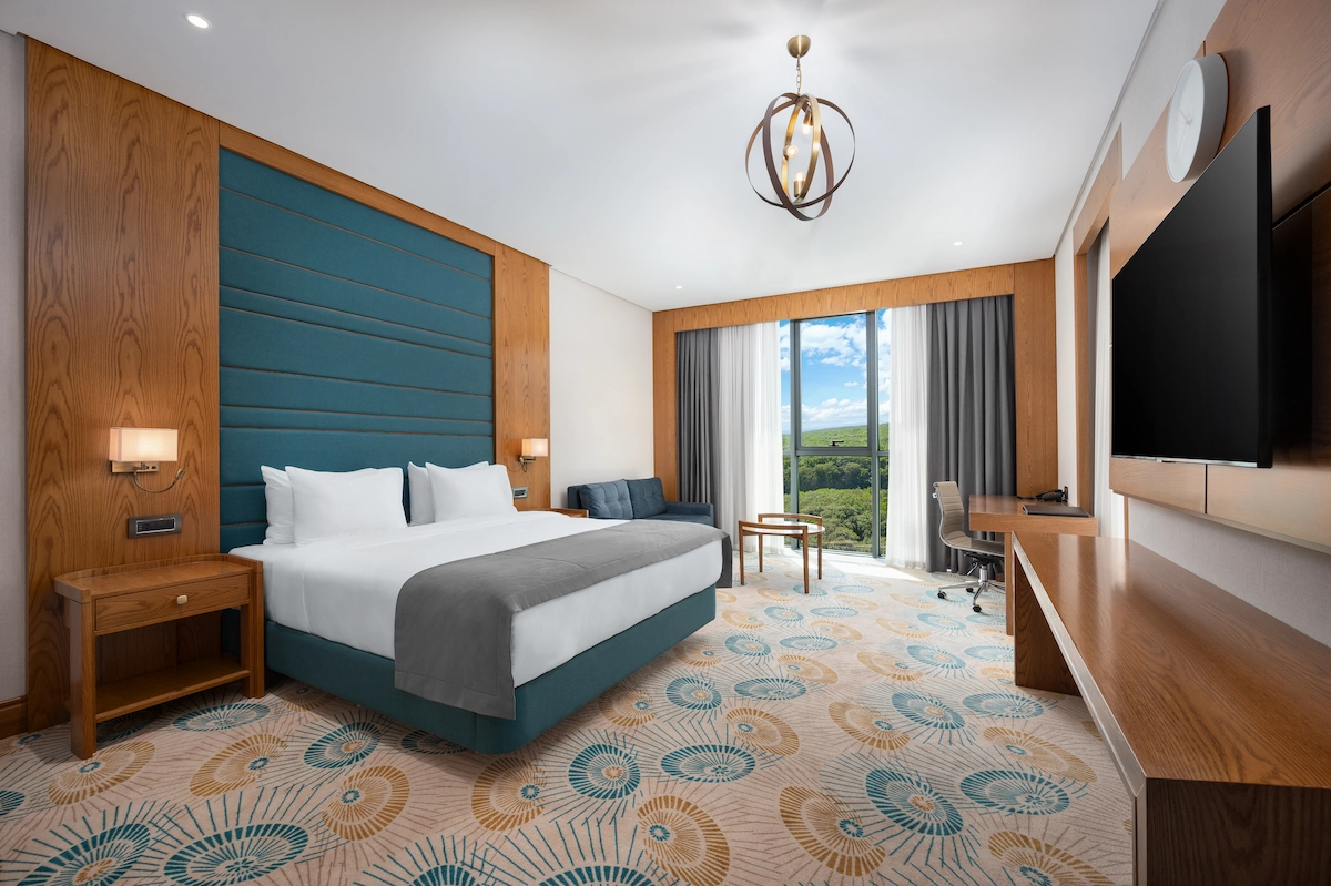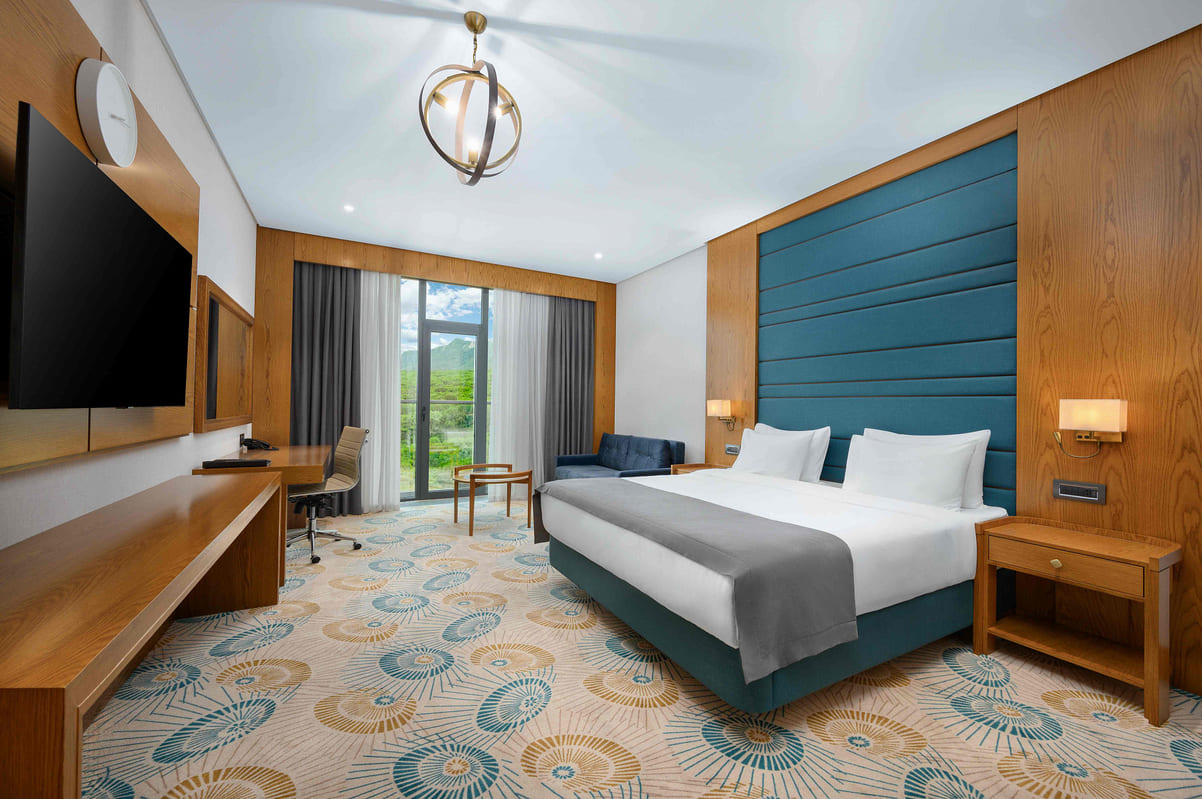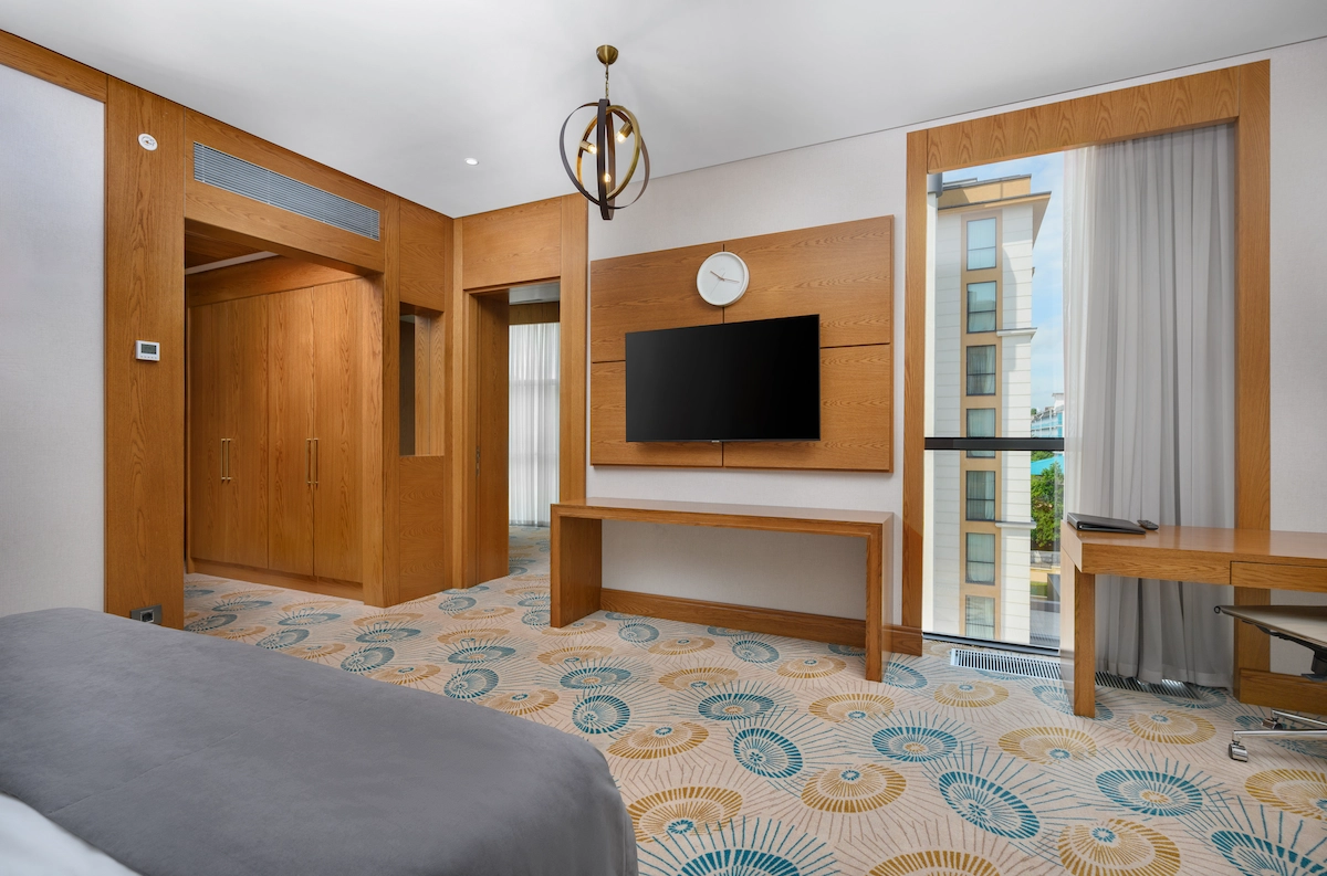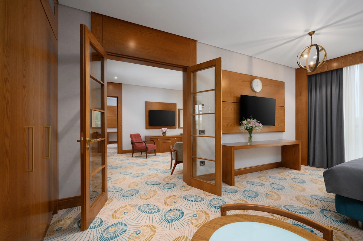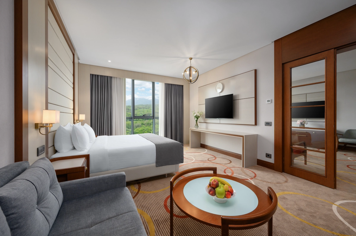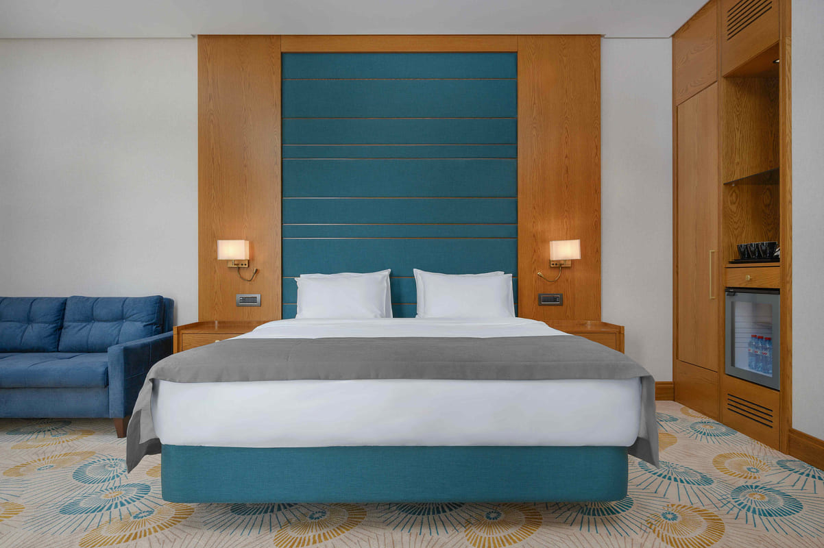 Просторные номера повышенной комфортности: площадь от 36 до 108 кв.м. с панорамными окнами и интеллектуальной системой климат-контроля.