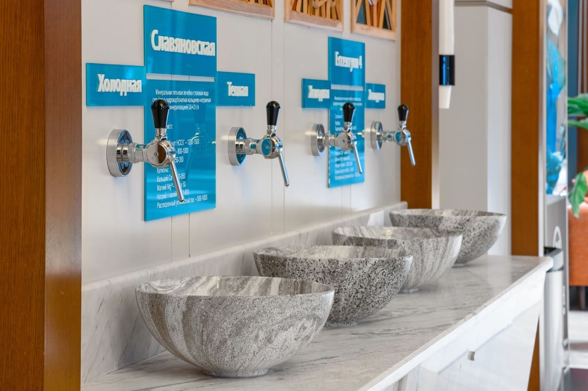 На территории санатория есть собственные бюветы с минеральными водами «Ессентуки 4», «Славяновская». Территория здравницы закрытая и благоустроенная.