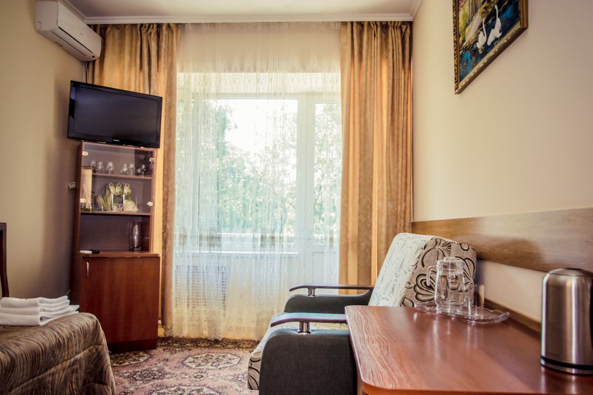Сервис: Банные полотенца, бесплатный трансфер на заезд и отъезд (по договоренности), 2 бесплатных посещения гидротерапевтического отделения, возможность стирки и глажки одежды.