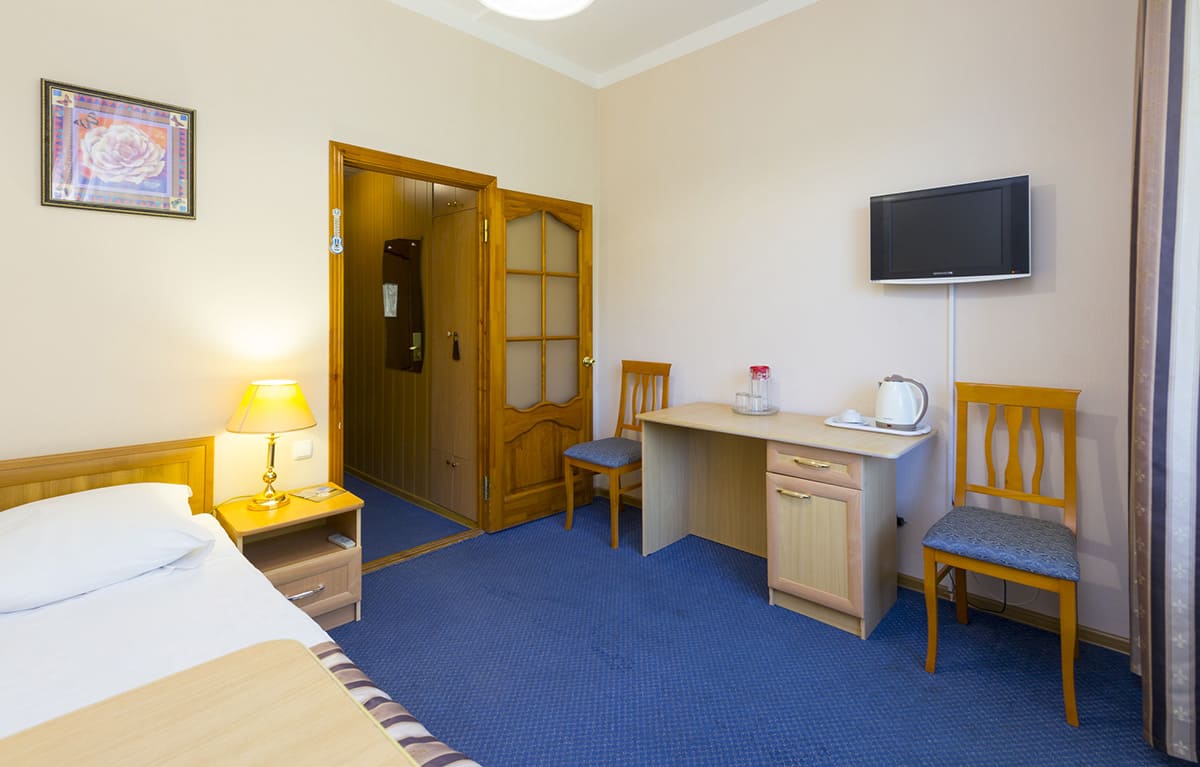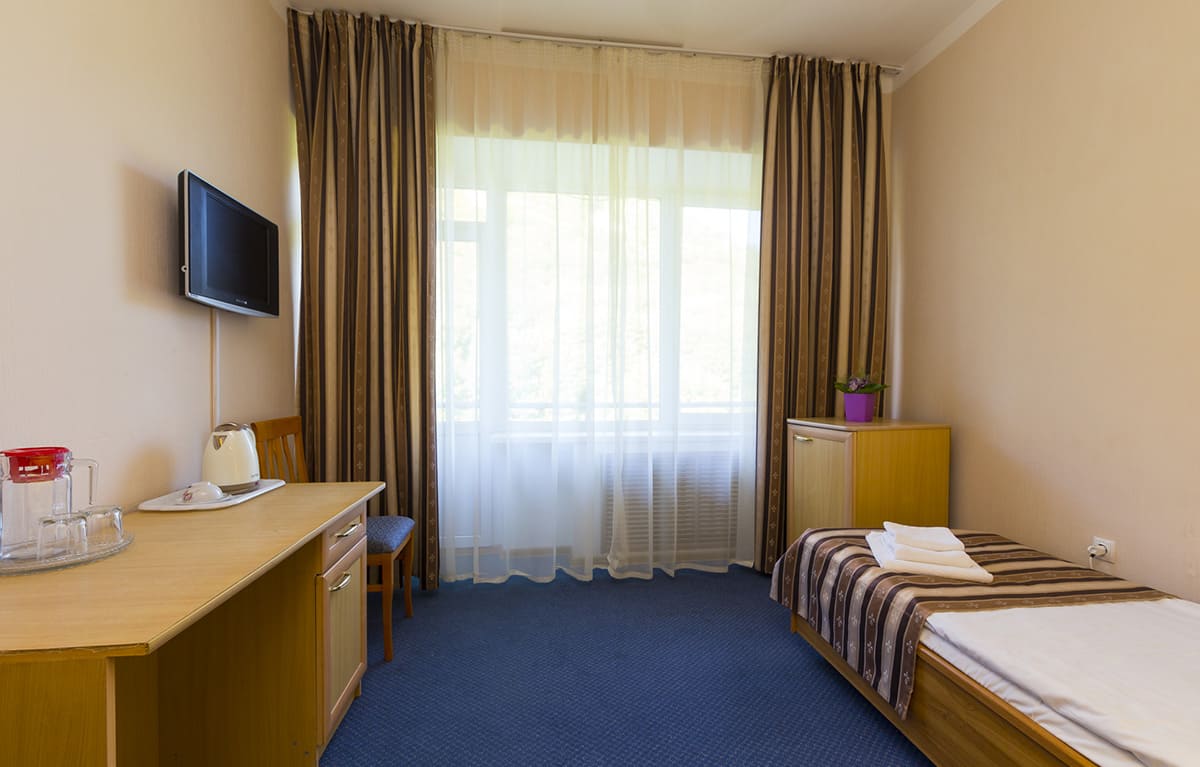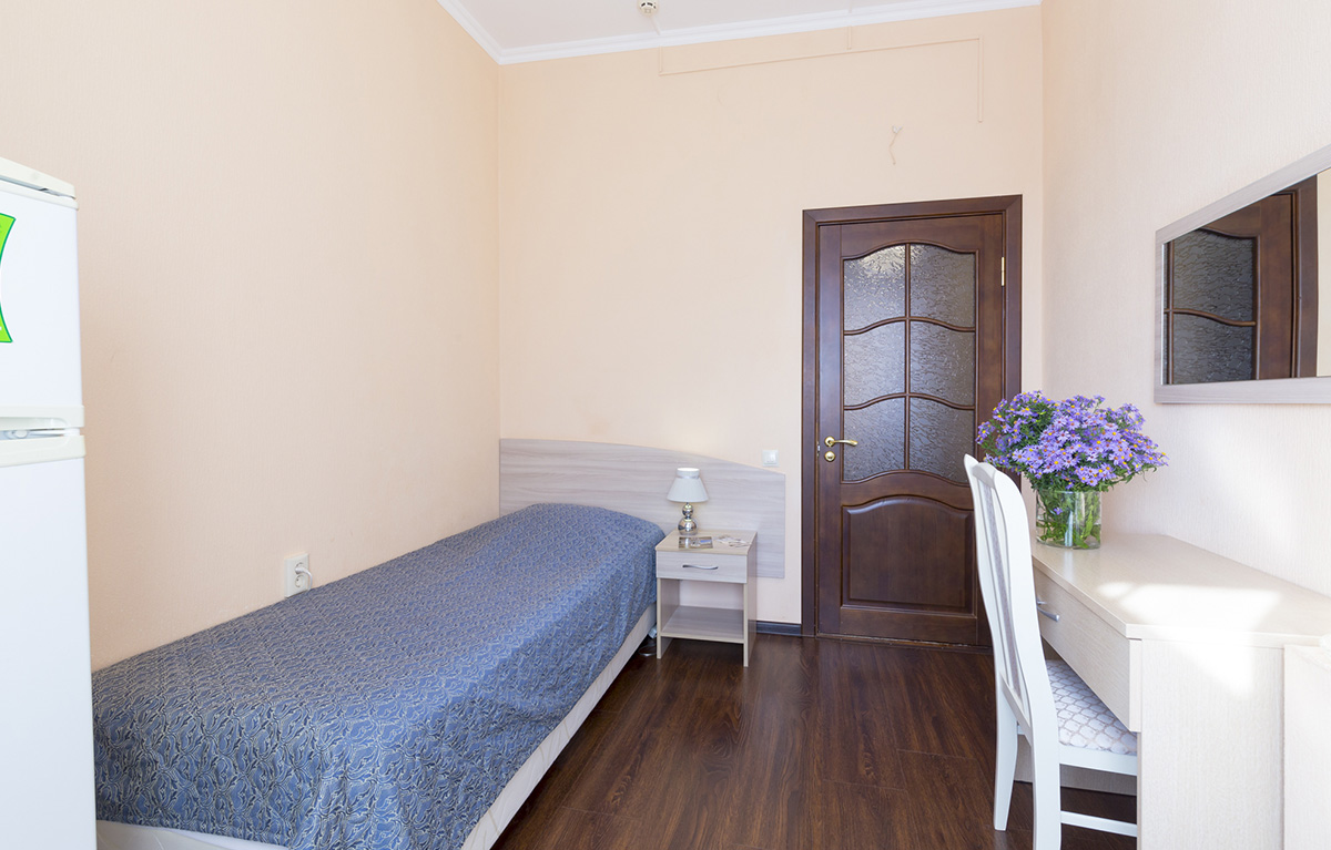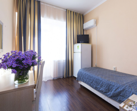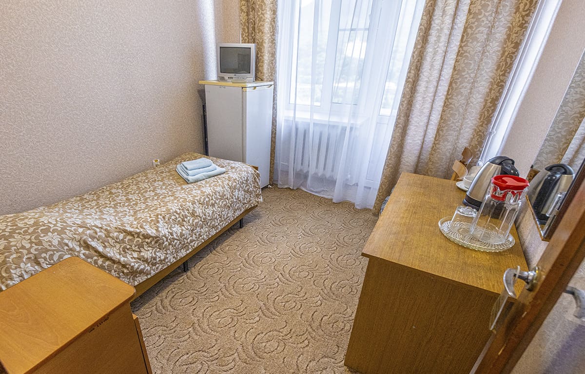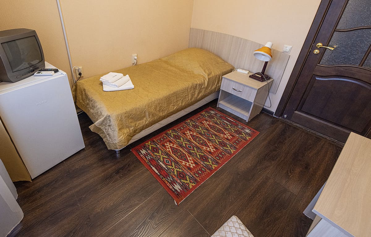 Площадь номера (кв. м.): 8-12. Мест в номере: 1 (+1 доп.).