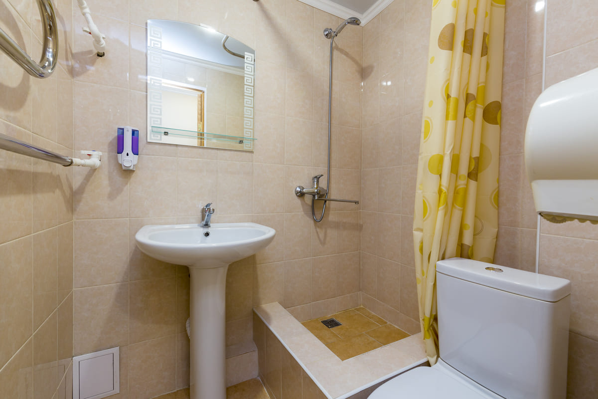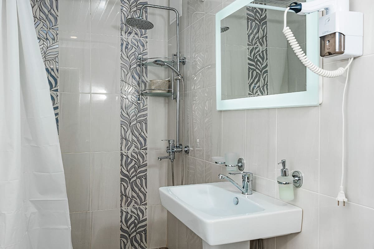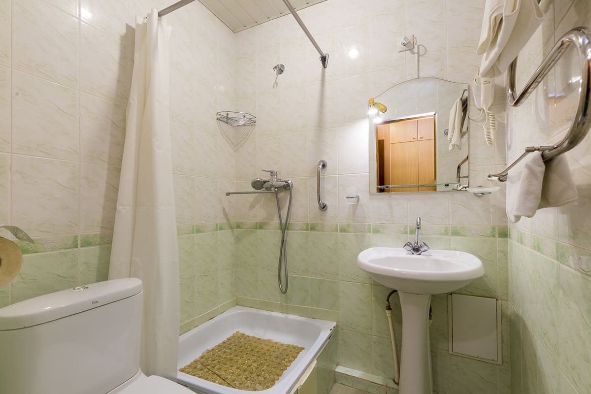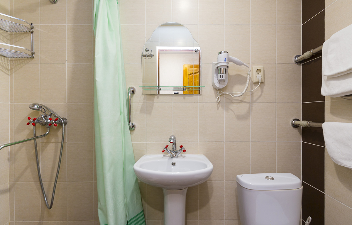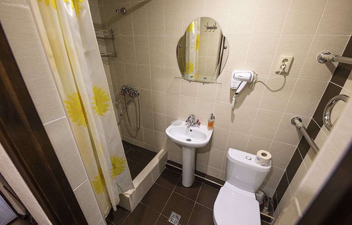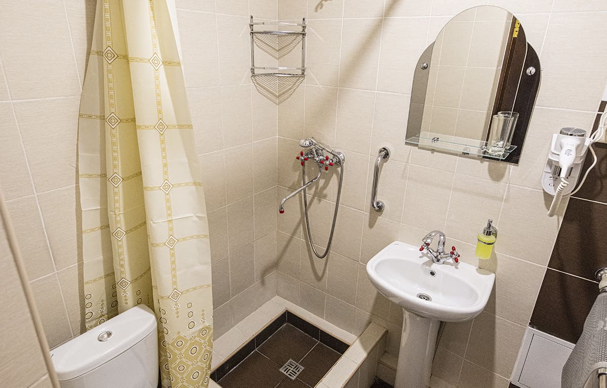 Санузел: с душем или ванной, туалетные принадлежности, фен.
