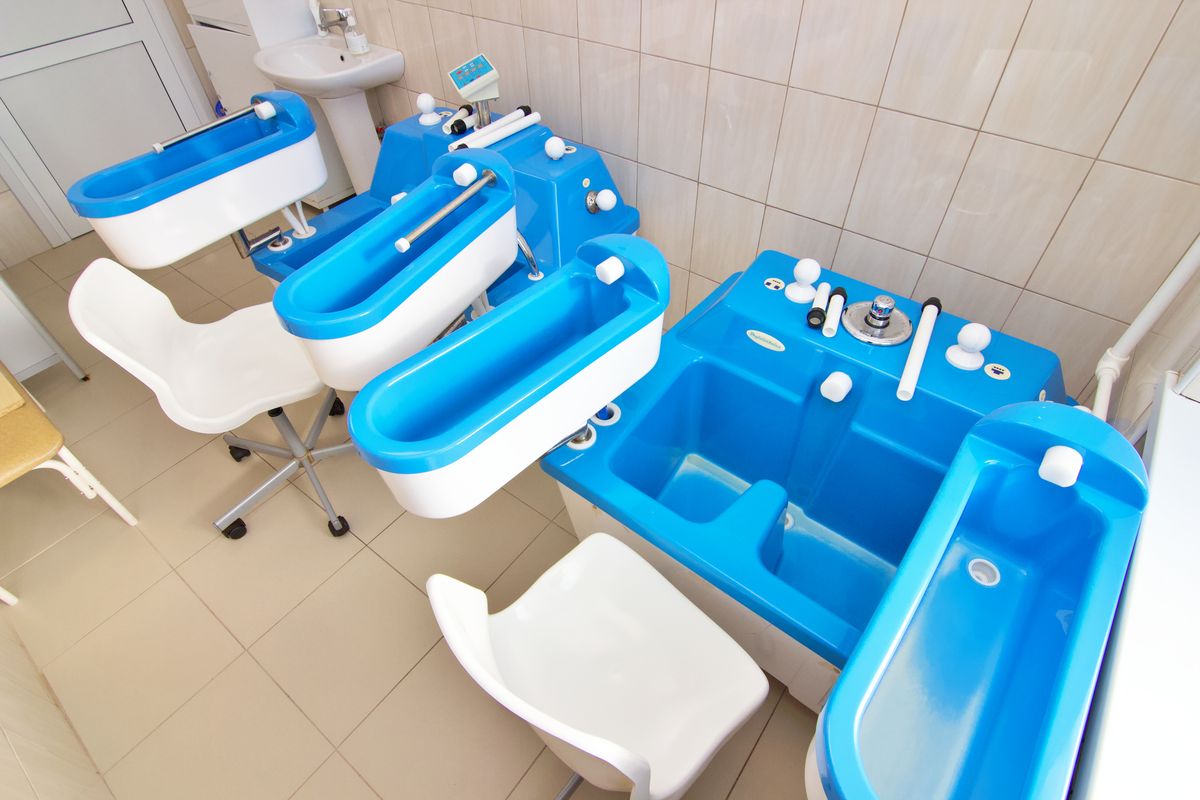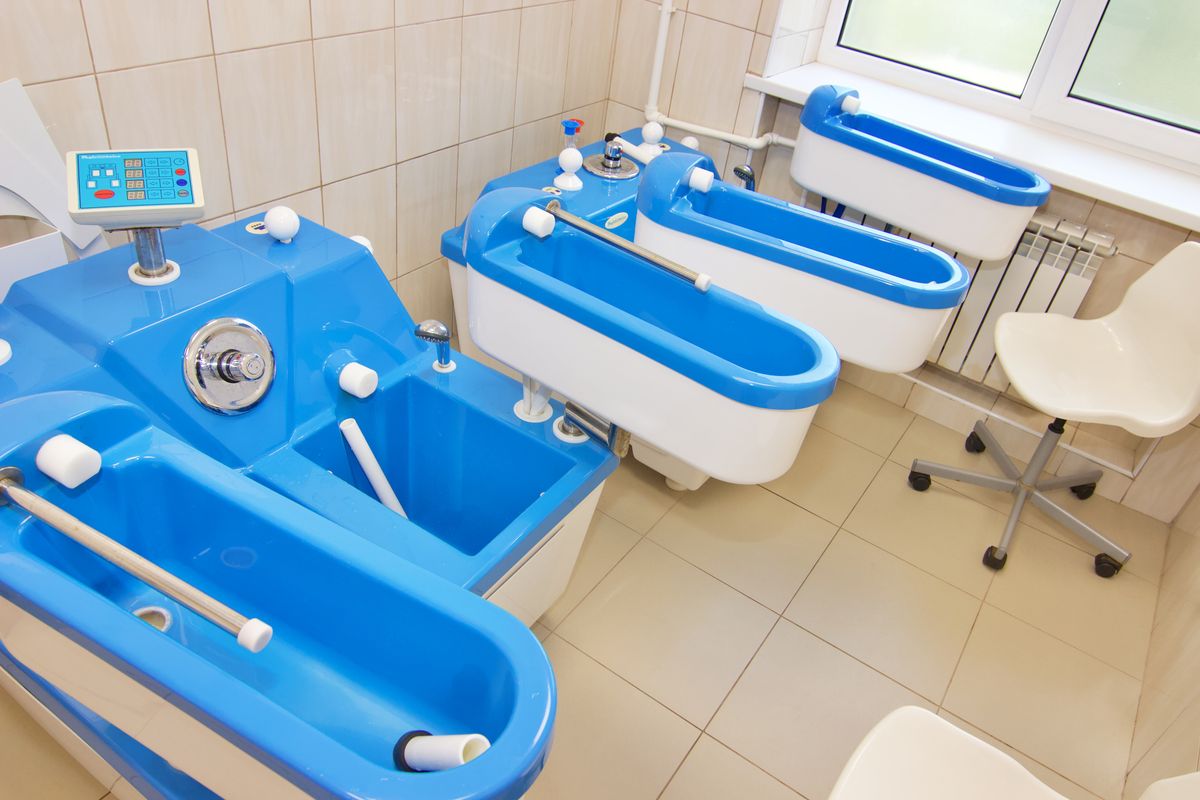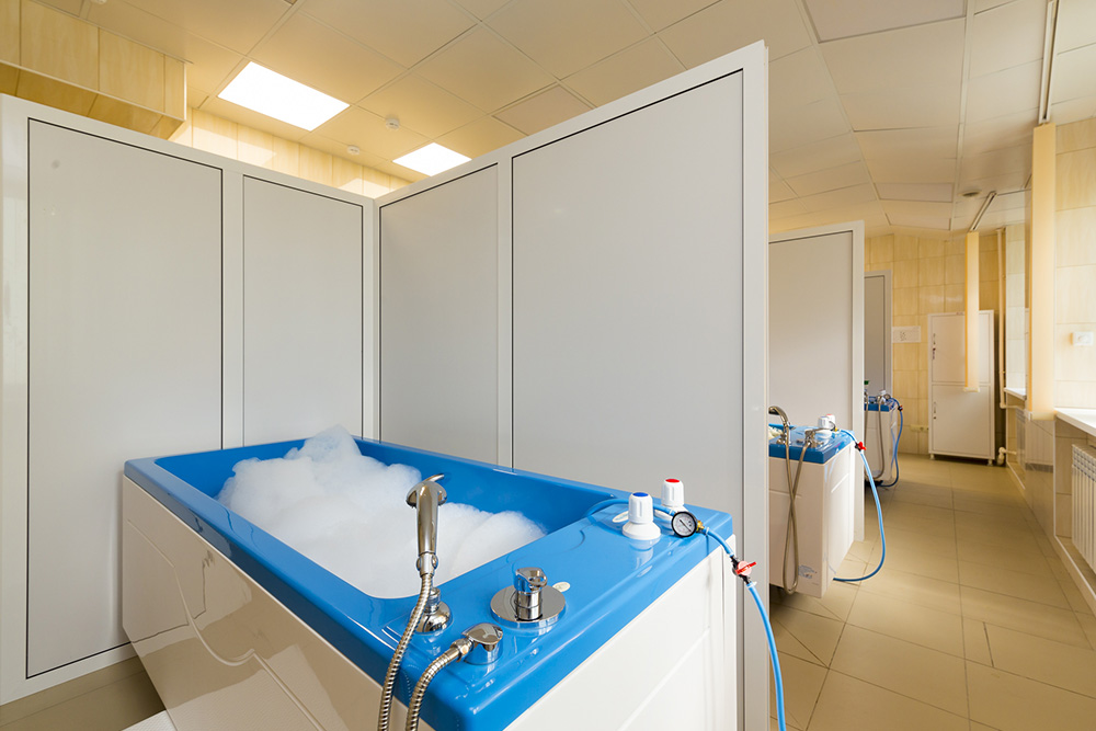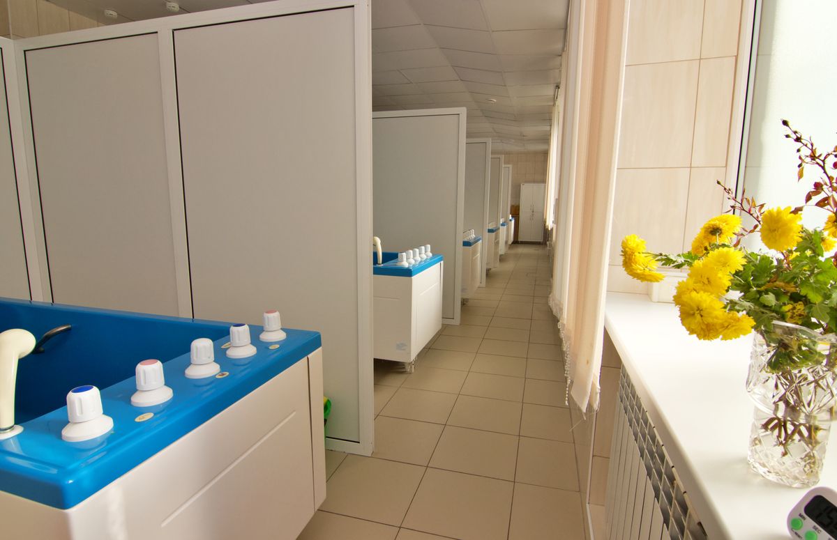 • Процедуры: лечебные ванны с серной и углекислой минеральными водами, пантовые и нафталановые ванны, подводный душ-массаж
