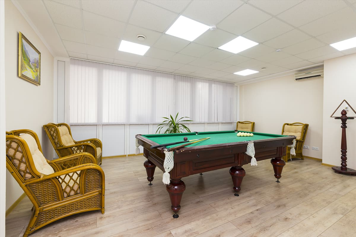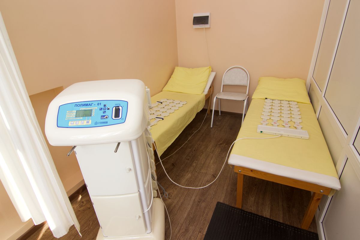 • Физиотерапия: 24 вида процедур, грязелечение, озоно- и карбокситерапия, ВЛОК, кишечные процедуры, соляная комната, ингаляции