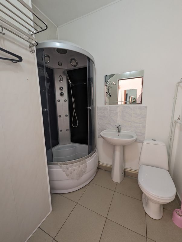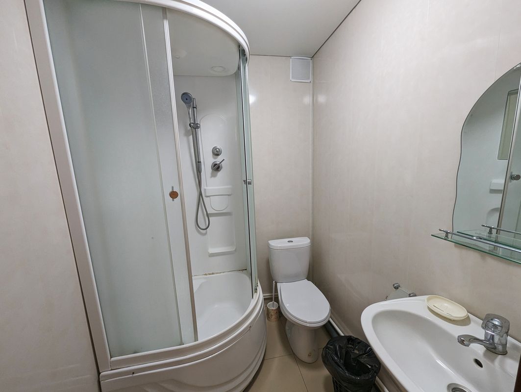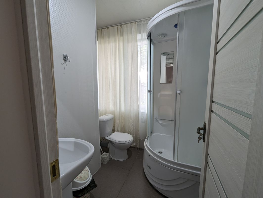 Санузел: с душевой кабиной, туалетные принадлежности, фен.