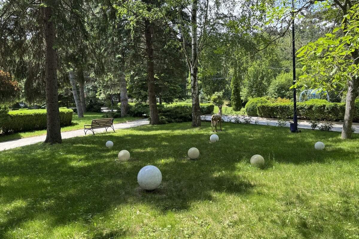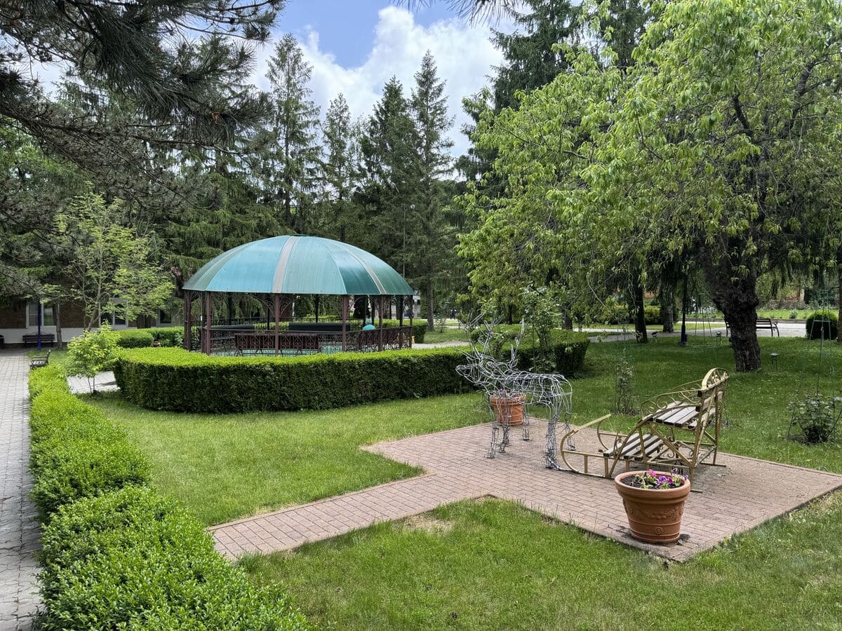 • Территория: 6 га с сосновым бором, цветущими кустарниками, прудом, зонами отдыха с гамаками и беседками