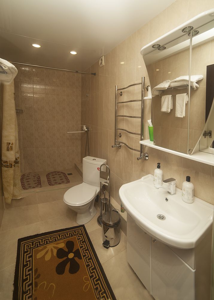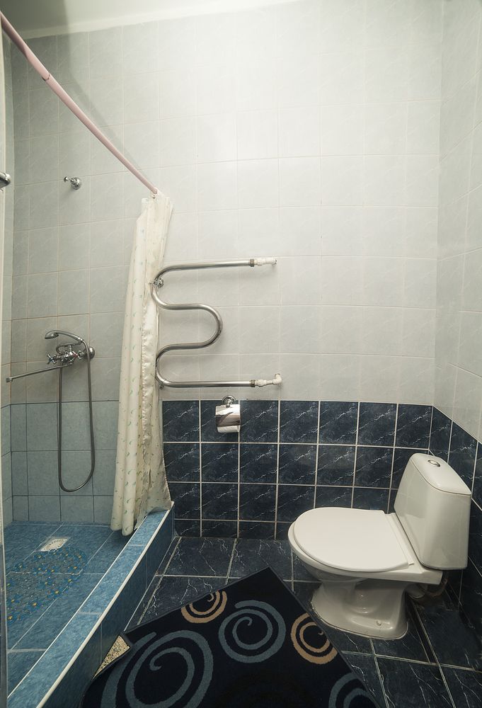 Санузел: с душем, тапочки, туалетные принадлежности, фен, халат.