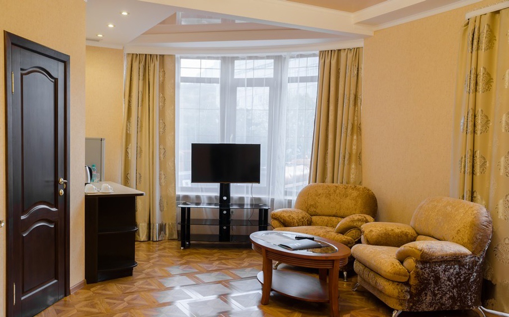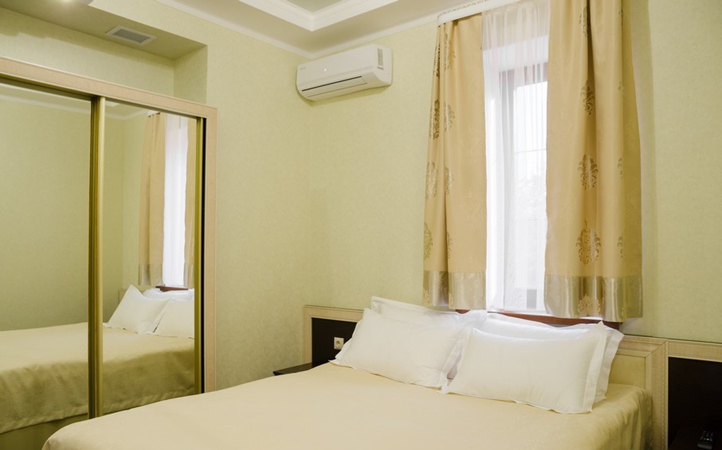 Оборудование: индивидуальная система обогрева, кондиционер, набор посуды, сейф, телевизор, телефон: кабельное ТВ, холодильник, электрочайник.