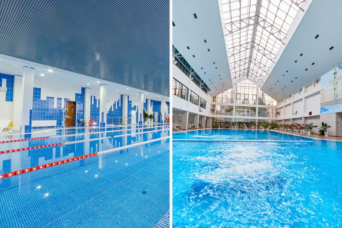 В «Солнечном» – крытый 25-метровый, открытый подогреваемый и детский бассейн; график щедрый – 07:00-21:00 без лимитов. В «МЧС» – крытый 25×12,5 м и гидрокомплекс. Семьям часто комфортнее в «Солнечном» из-за детской чаши и анимации.