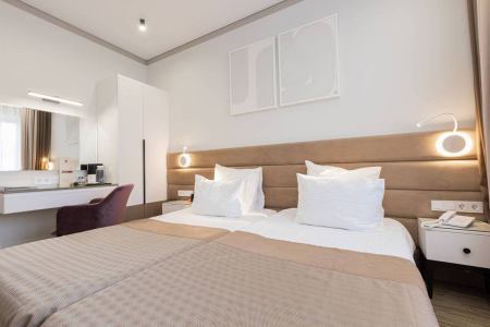 Современные номера: в 2021-22 годах проведен полный ремонт номерного фонда - теперь номера более светлые, современные и комфортабельные.