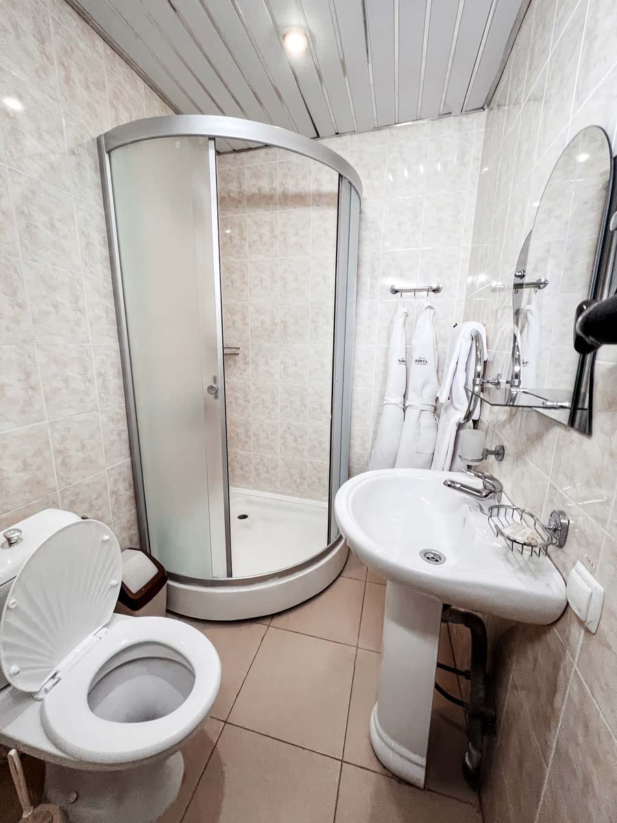Она не просто маленькая, она крошечная. Даже походы в кафе в поисках еды не так напрягают, как мыться в этой кабинке.