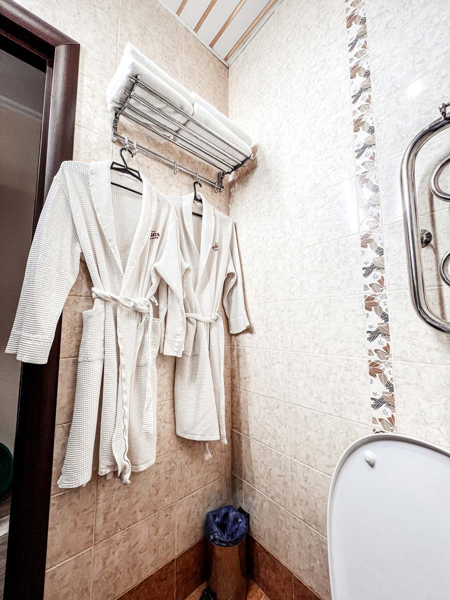 Санузел: собственная ванная комната, предоставляются халаты, фен.