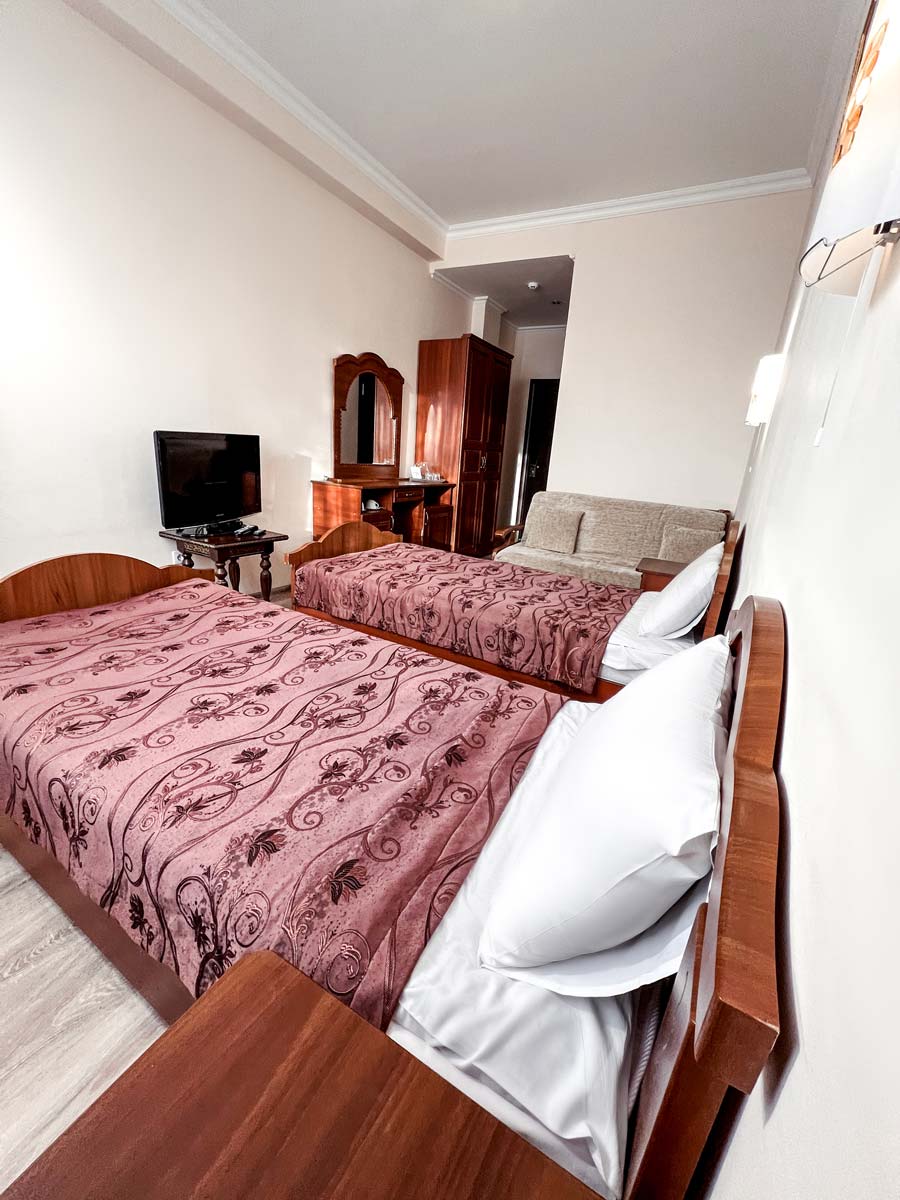Мест в номере: 2 основных (2 односпальные кровати) + 2 дополнительных (диван-кровать).