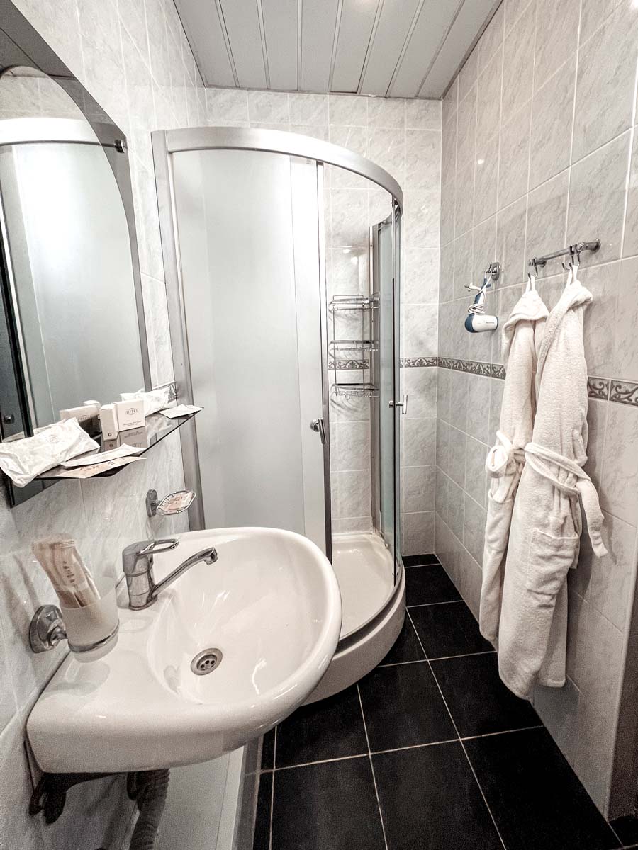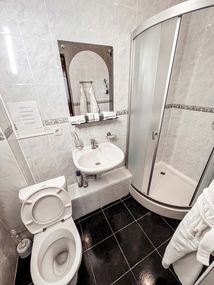 Кулеров, конечно, тоже нет. Воду придётся покупать постоянно, благо в 15 минутах от санатория есть пятёрка.