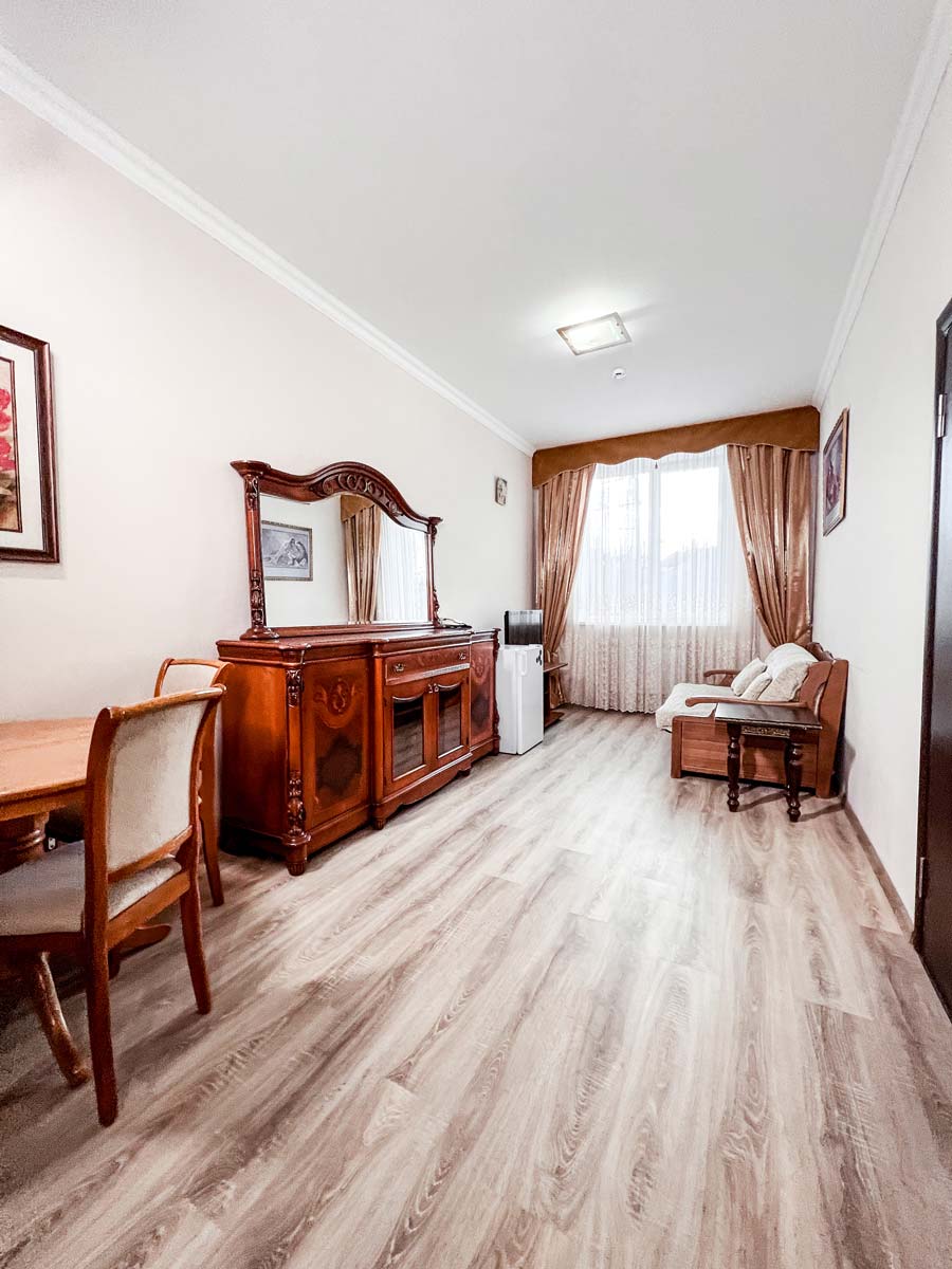 Площадь номера (кв. м.): 45 м² (ламинатное покрытие).