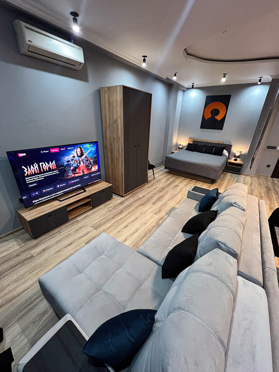 Мест в номере: 2 основных + 2 дополнительных места (двуспальная кровать + диван-кровать).