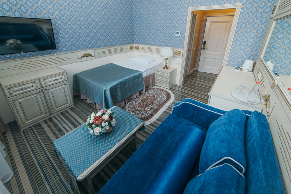 Сервис: Wi-Fi бесплатно, room-сервис, мини-бар, смена полотенец, смена постельного белья, уборка номера.