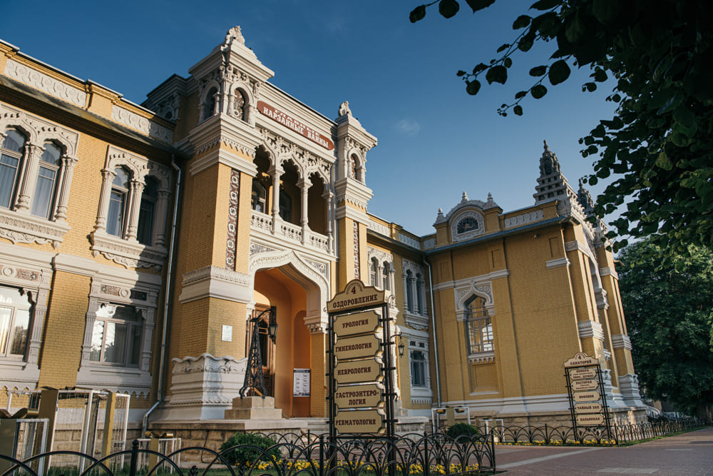 Санаторий «Главные Нарзанные ванны» находится в непосредственной близости от Нарзанной галереи в центре Кисловодска, в окружении главных городских достопримечательностей и с отличной инфраструктурой, множеством уютных кафе и ресторанов, с превосходной, полезной и невероятно вкусной кавказской кухней. Это один из страннейших санаториев региона, который был основан более ста лет тому назад, в самом начале XX века.