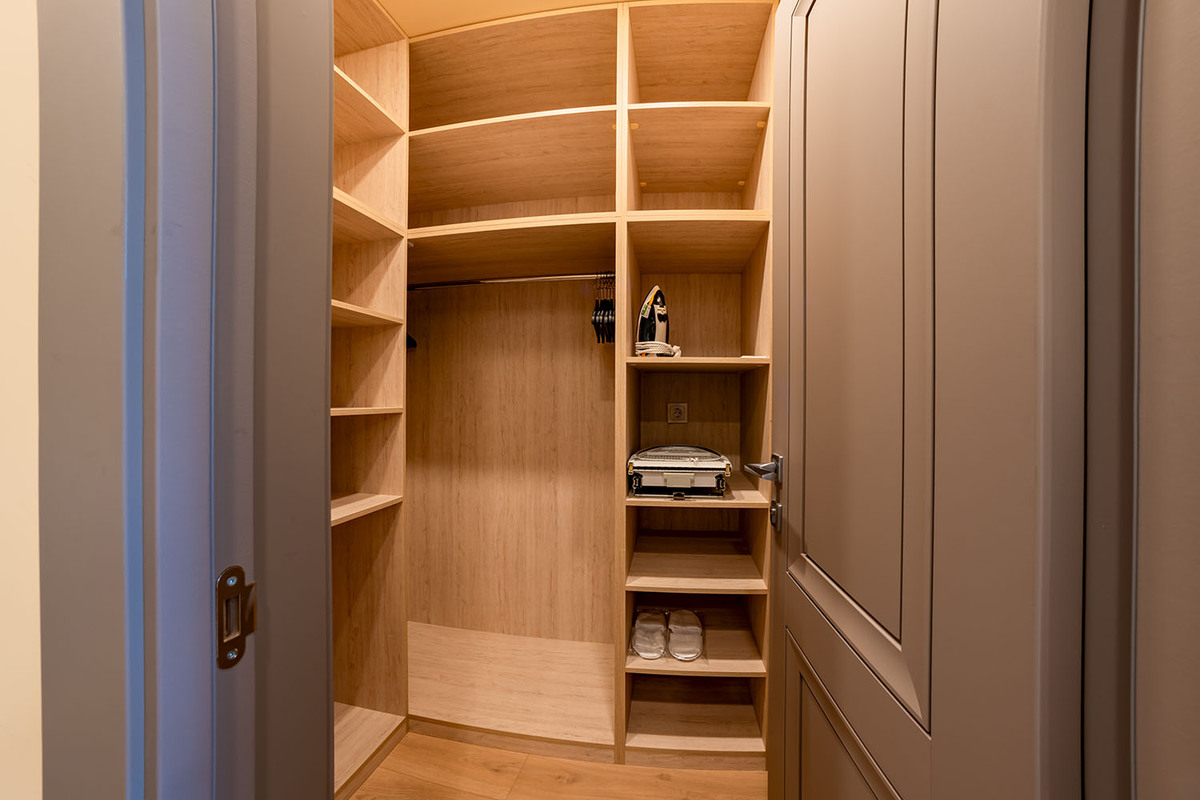 Мебель: вешалка, зеркало, кровать двуспальная, прикроватные тумбочки, стол, стул, шкаф.