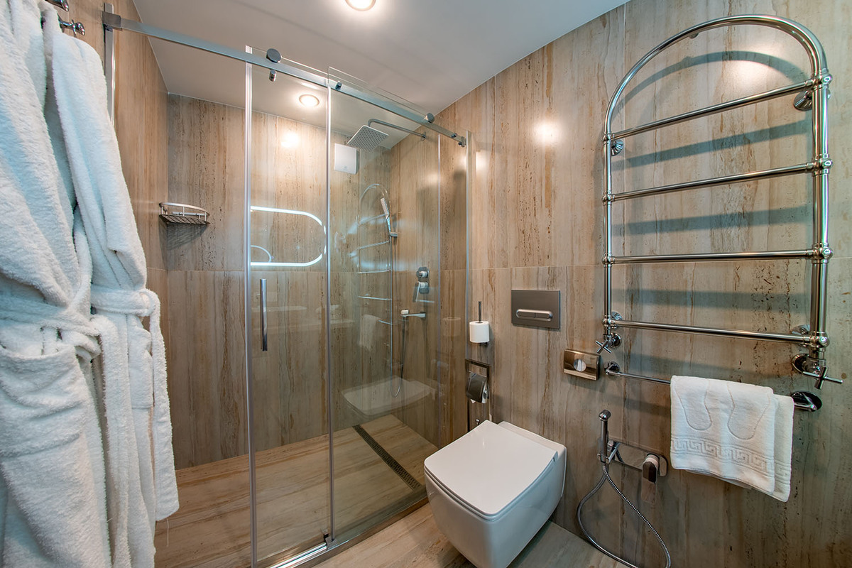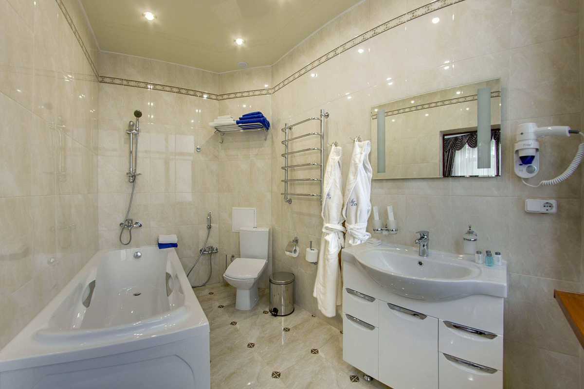 Санузел: 2 санузла, биде, с ванной, с душем, тапочки, туалетные принадлежности, фен, халат.