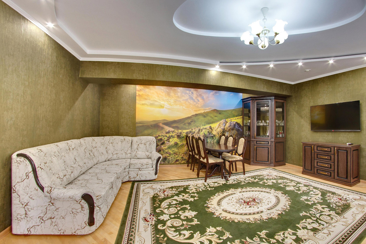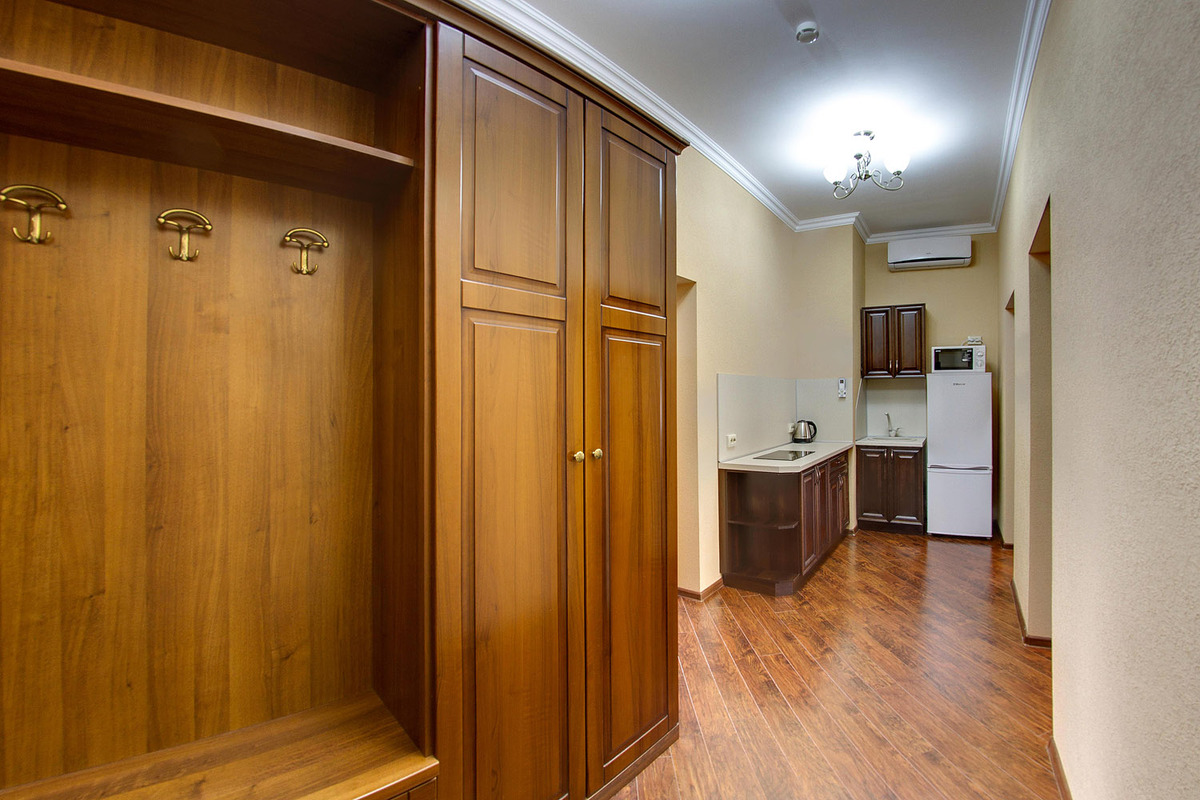 Оборудование: кондиционер, микроволновая печь, набор посуды, плита электрическая, сейф, телевизор, телефон, холодильник, чайный набор посуды, электрочайник.