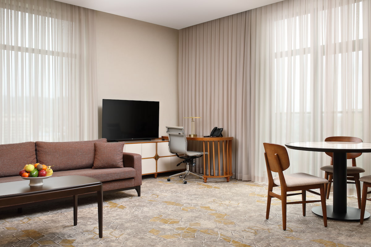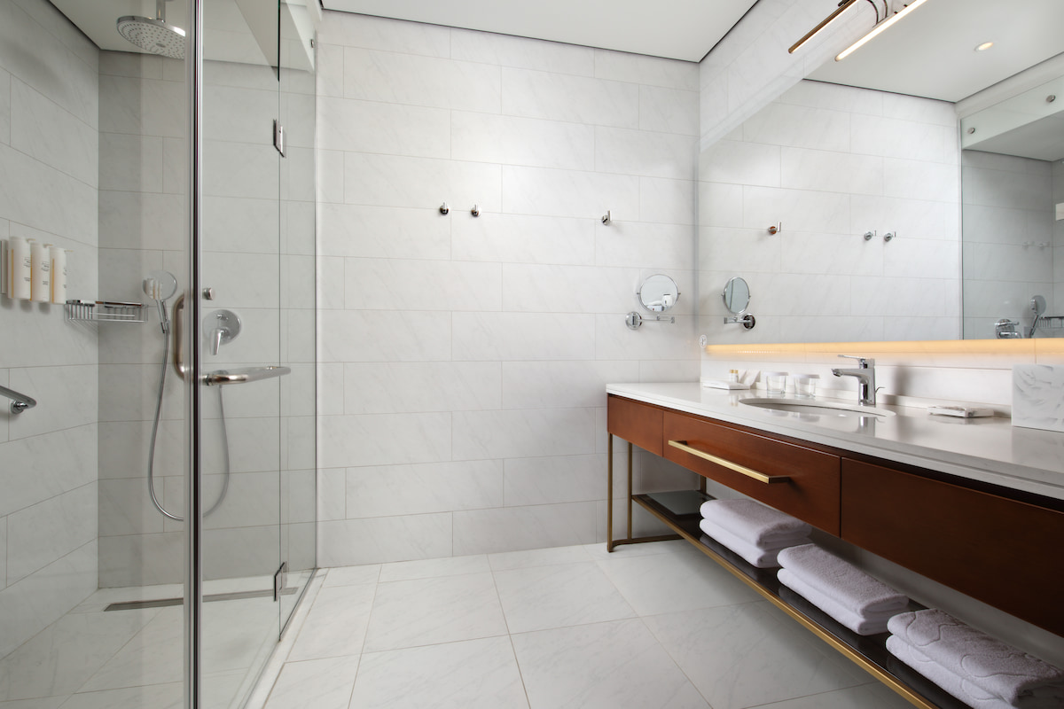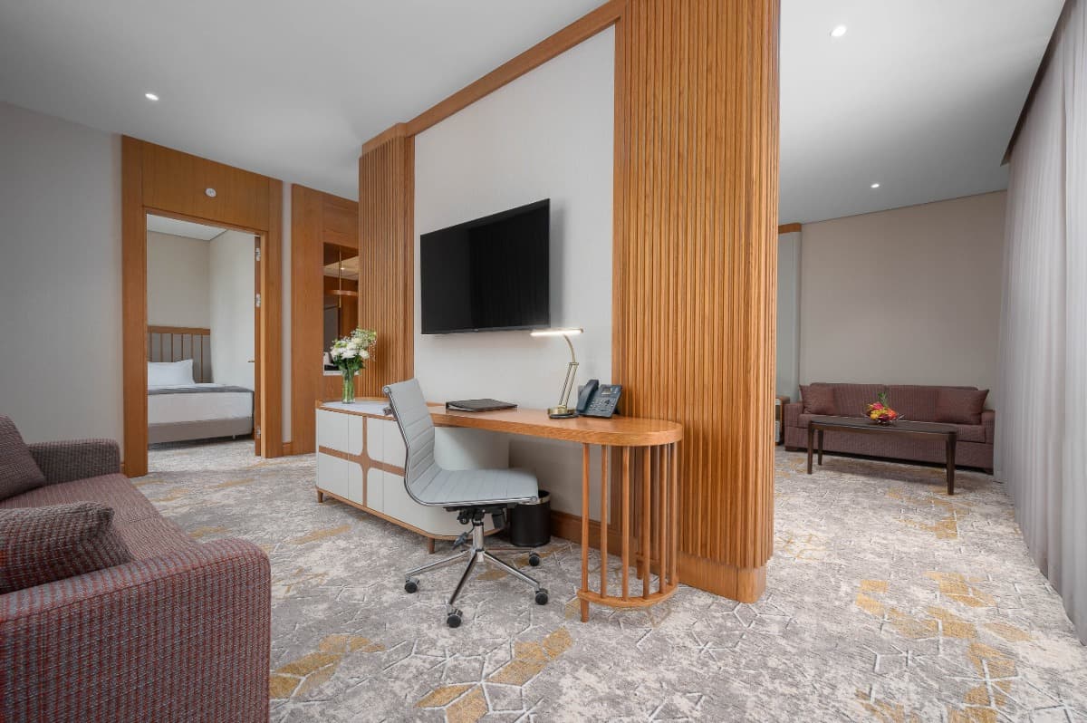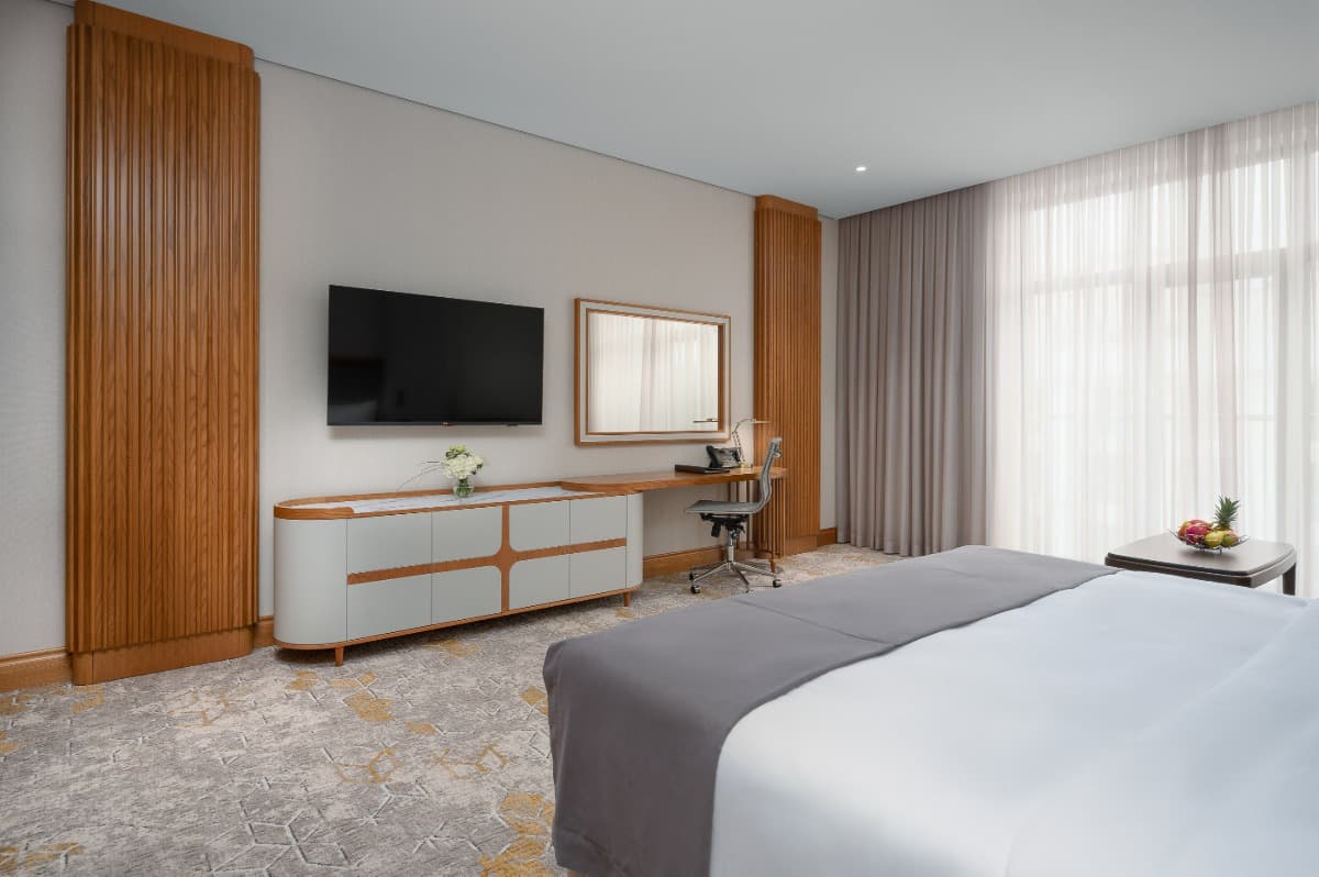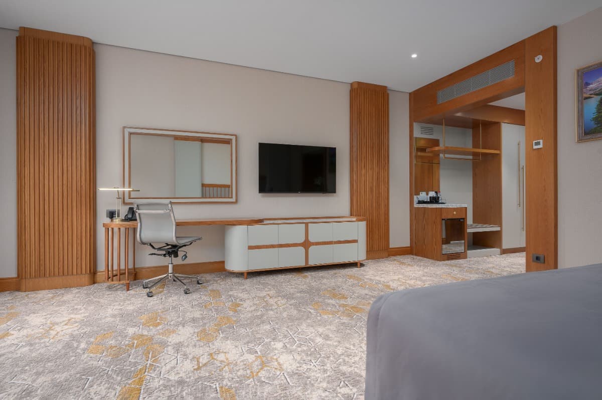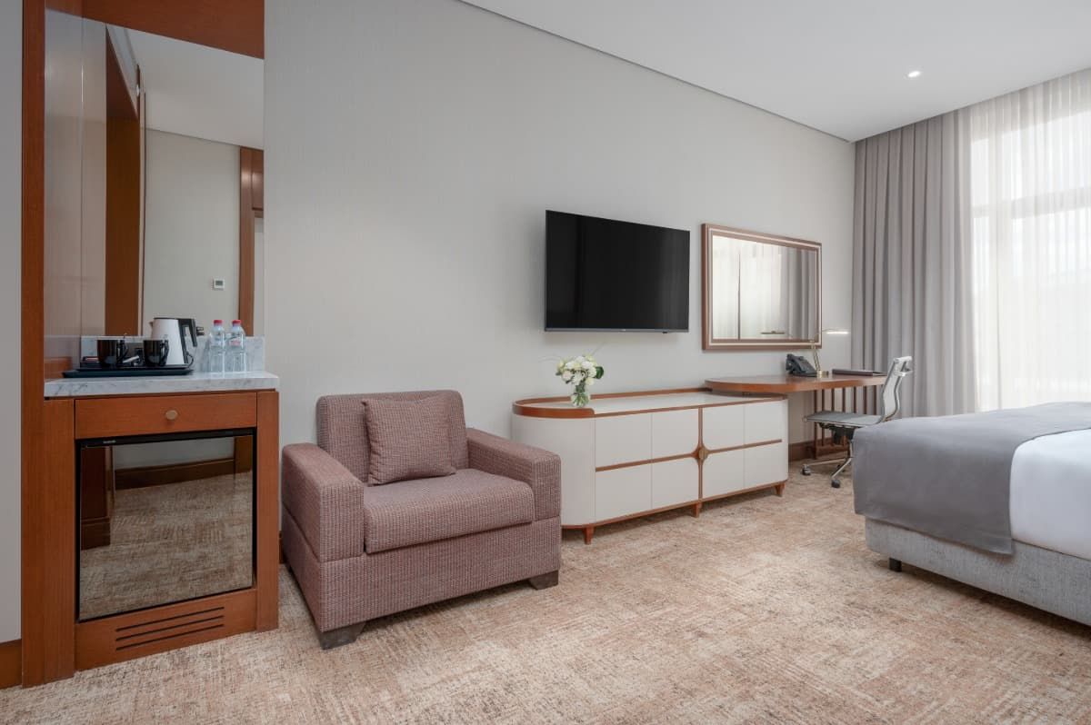 В каждом номере установлена система контроля климата, имеются чайно-кофейные наборы, фен, банные принадлежности, гостевая парфюмерия, халат и тапочки.