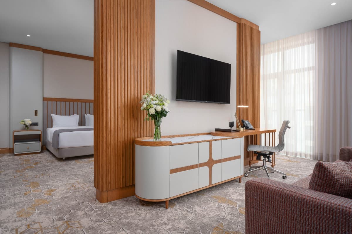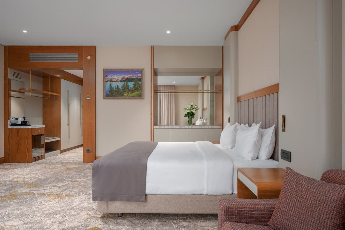 В номерах категории «Делюкс Элегант» также предусмотрено дополнительное спальное место для ребенка.