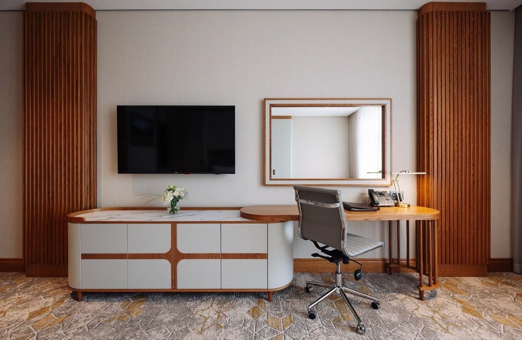 Оборудование: климатическая система, мини-холодильник, сейф, телевизор, телефон, чайный набор посуды, электрочайник.