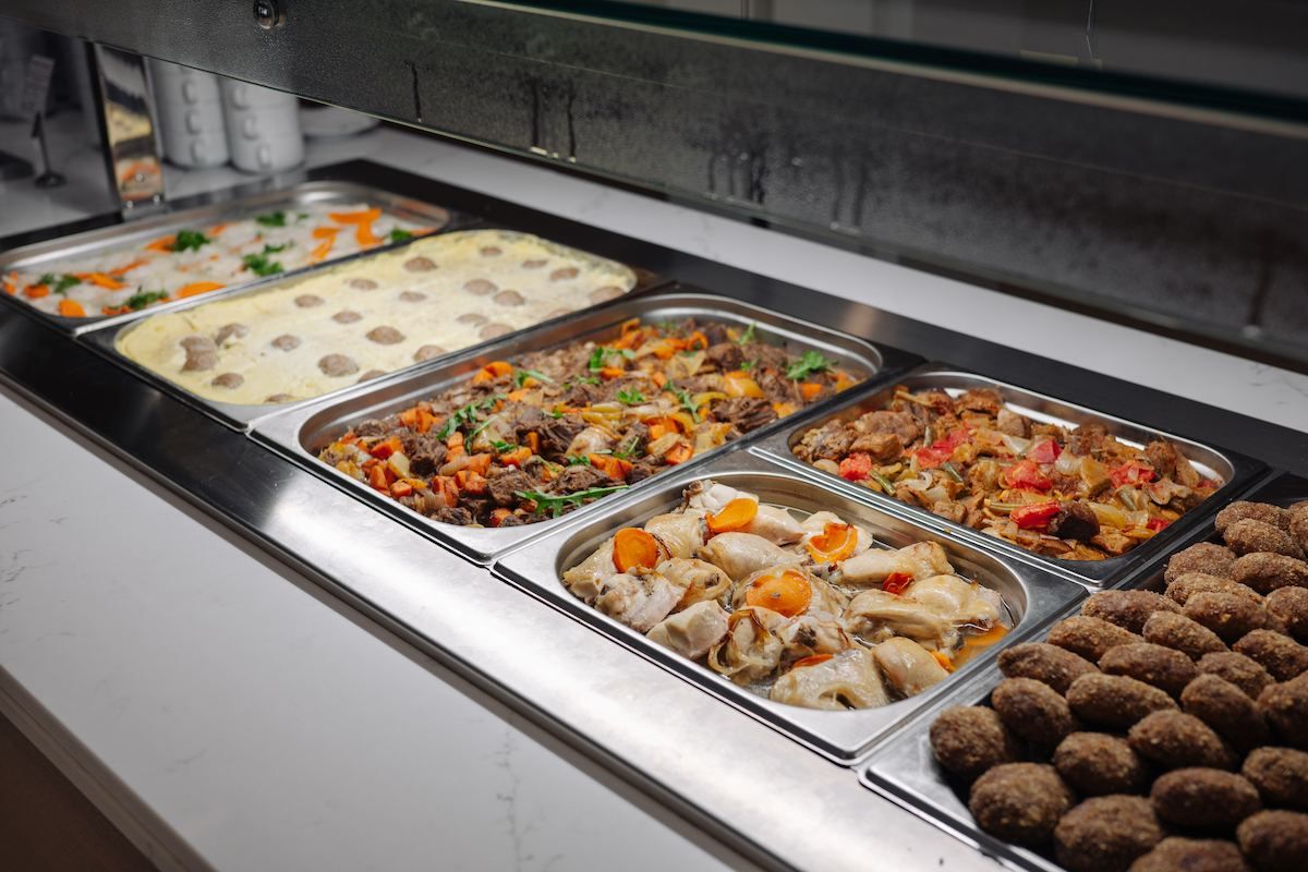 На шведской линии представлен широкий ассортимент горячих блюд, свежих овощей и фруктов. Все позиций готовятся из свежих местных продуктов.