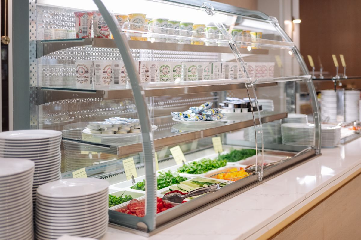 «Шведский стол» в санатории предлагает свободу выбора и позволяет каждому гостю создать персональный рацион. Все позиции на линии промаркированы, что упрощает процесс выбора: указаны номер диеты, калорийность, белки, жиры и углеводы. Это особенно важно для тех, кто следует особым рекомендациям врача. В ресторане всегда присутствует диетсестра, которая готова дать консультацию отдыхающим.