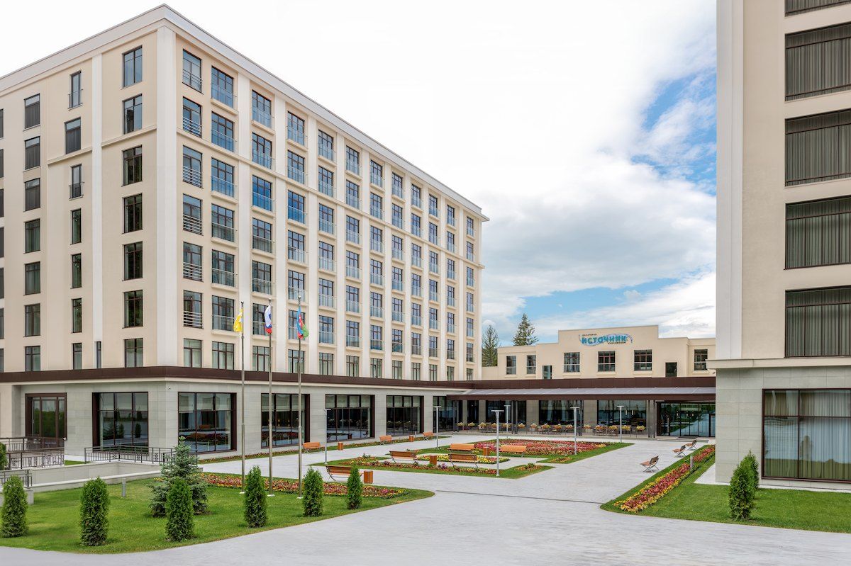 Санаторий «Источник» включает 4 корпуса различной этажности. В каждом здании комплекса предусмотрены уютные зоны для отдыха.