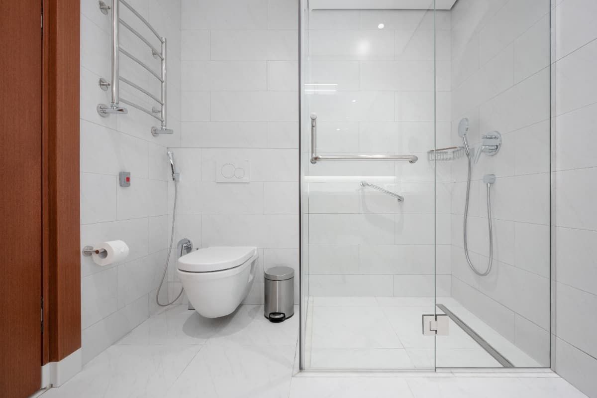 Санузел: с душем, тапочки, туалетные принадлежности, фен, халат.