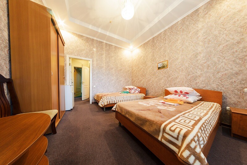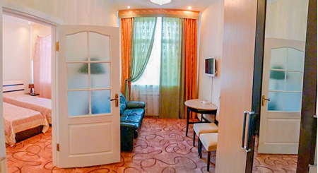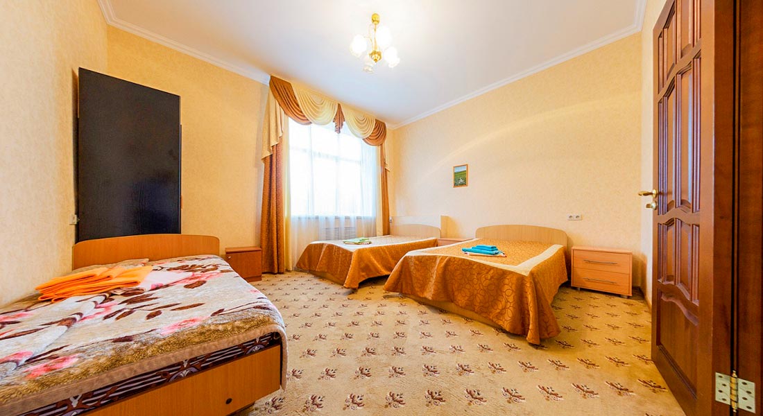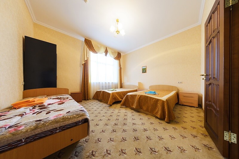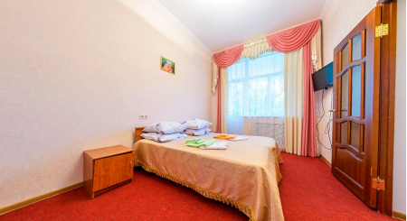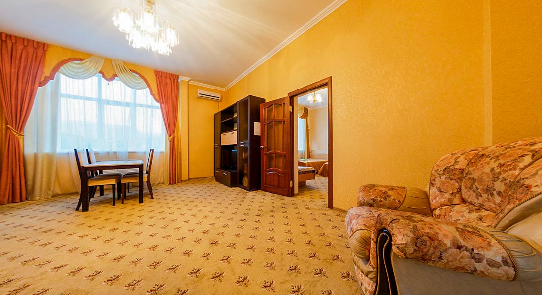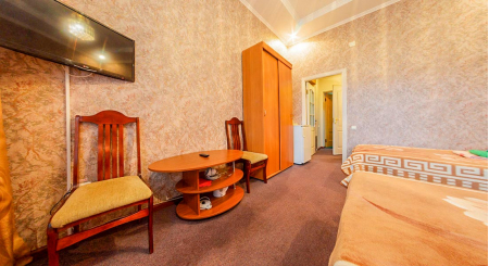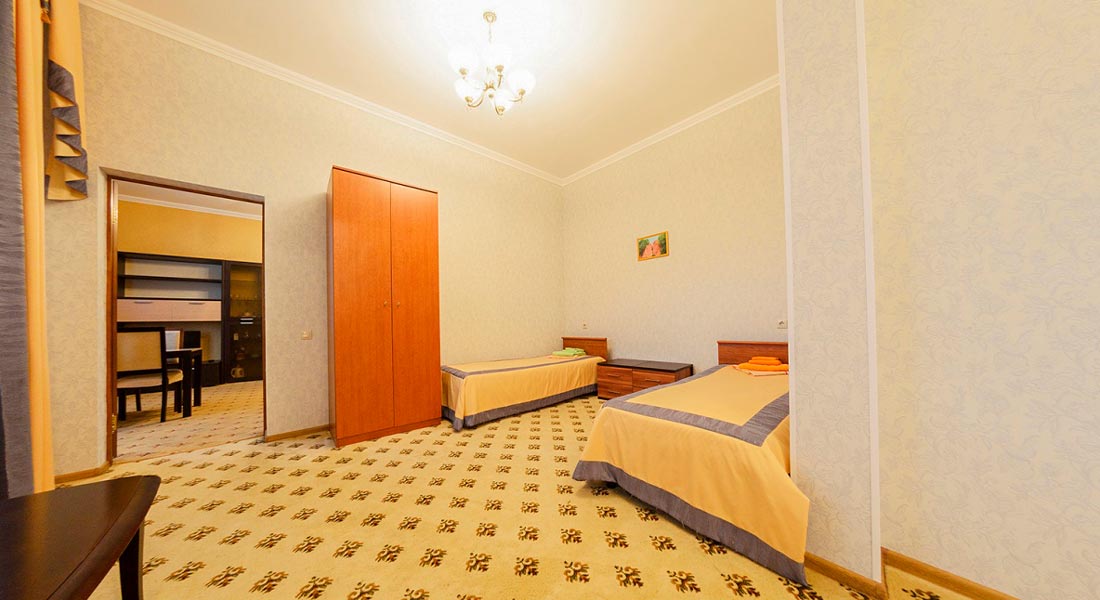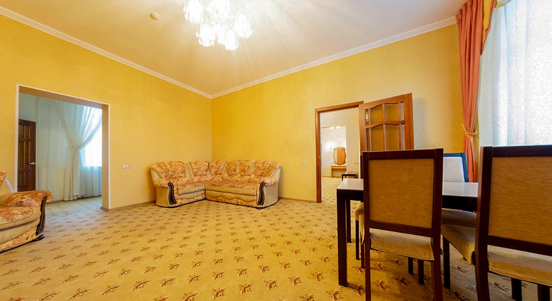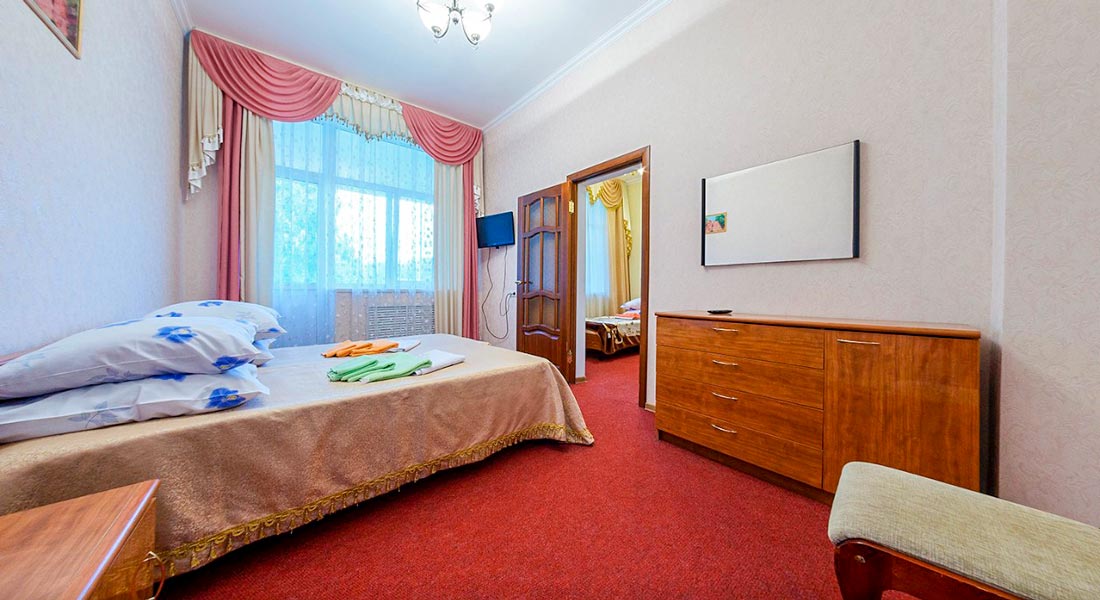Номера санатория «Кавказ» — это стандартные 1-2х местные и улучшенные — 2-3х комнатные. Интерьеры и оснащенность номеров скромные. При этом все необходимое есть. Мебель, бытовая техника и сантехника не новые, но в рабочем состоянии. Номера в новом корпусе санатория с балконами.