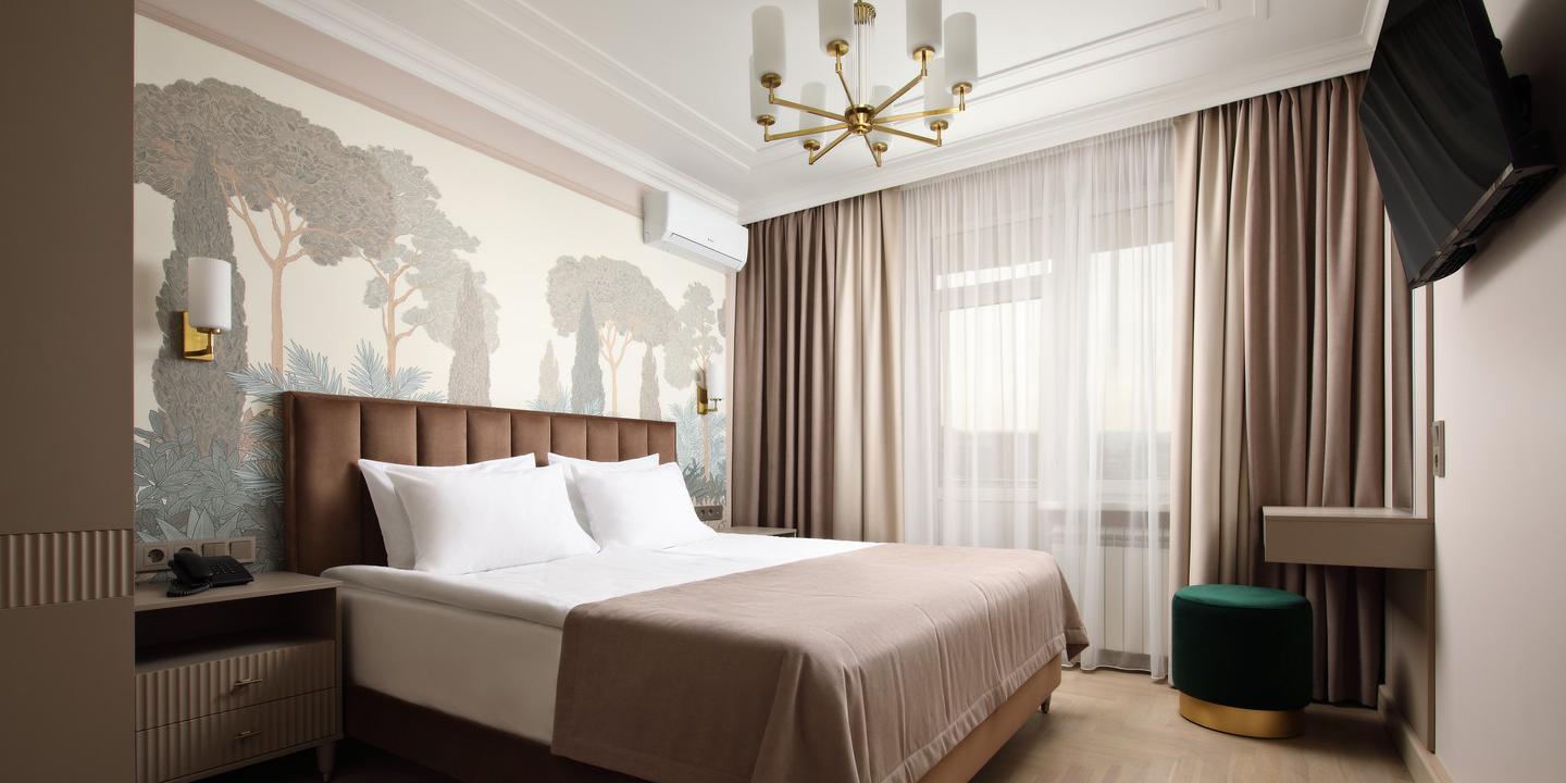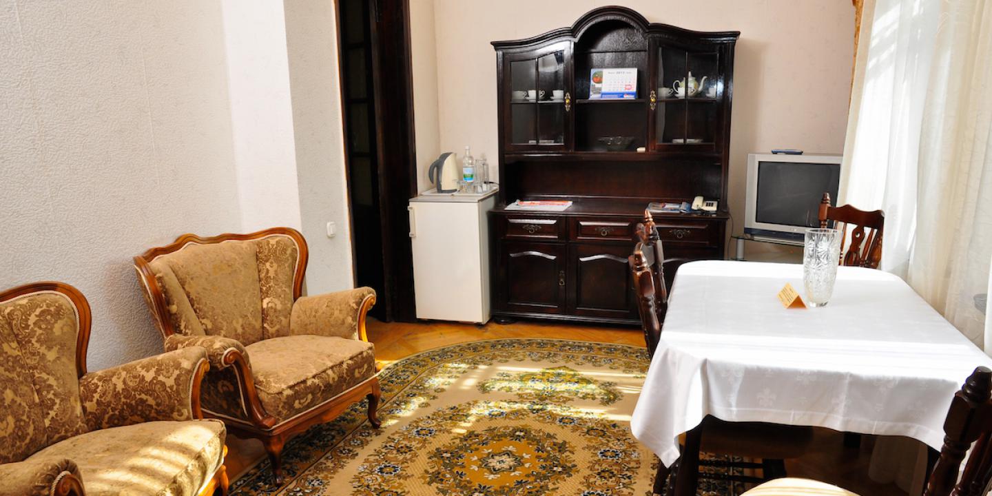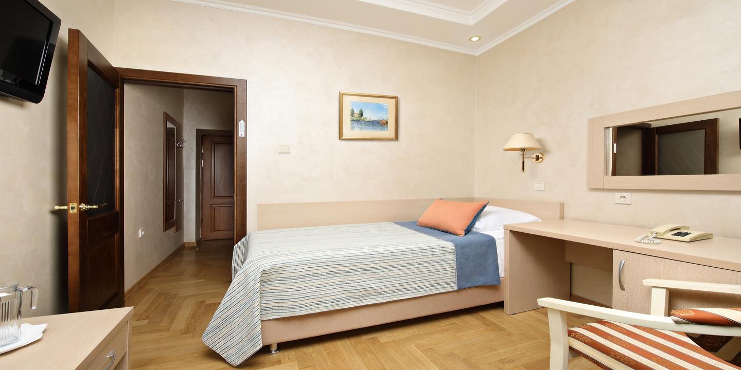 Оборудование: кондиционер, мини-холодильник, сейф, телевизор, телефон, чайный набор посуды, электрочайник.
