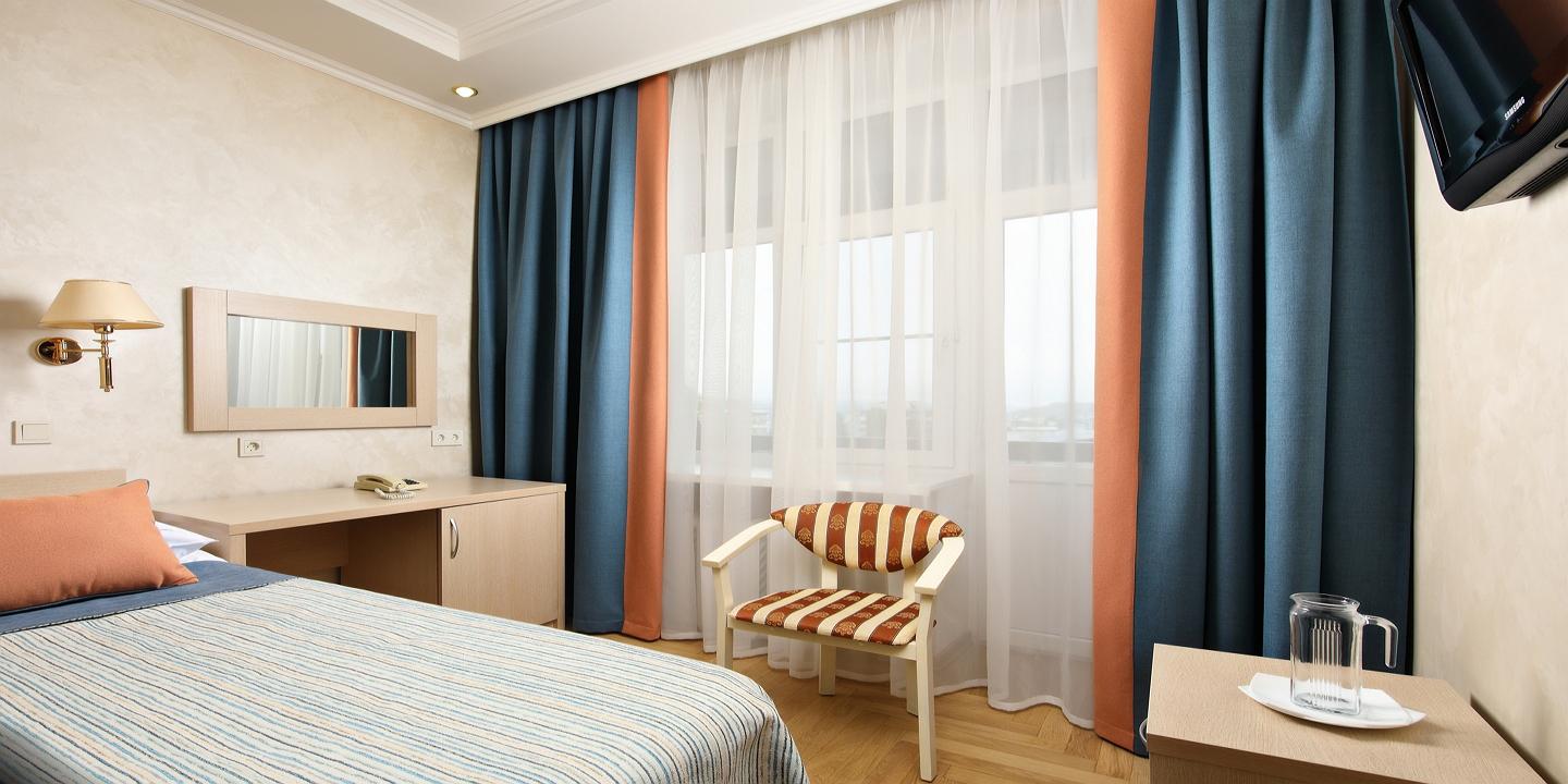 Сервис: карточная система замков, смена полотенец, смена постельного белья, уборка номера, услуги внутренней телефонной связи.