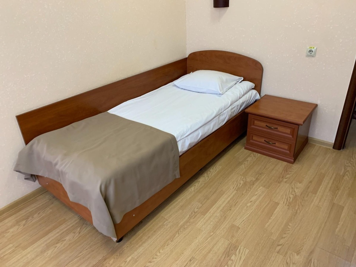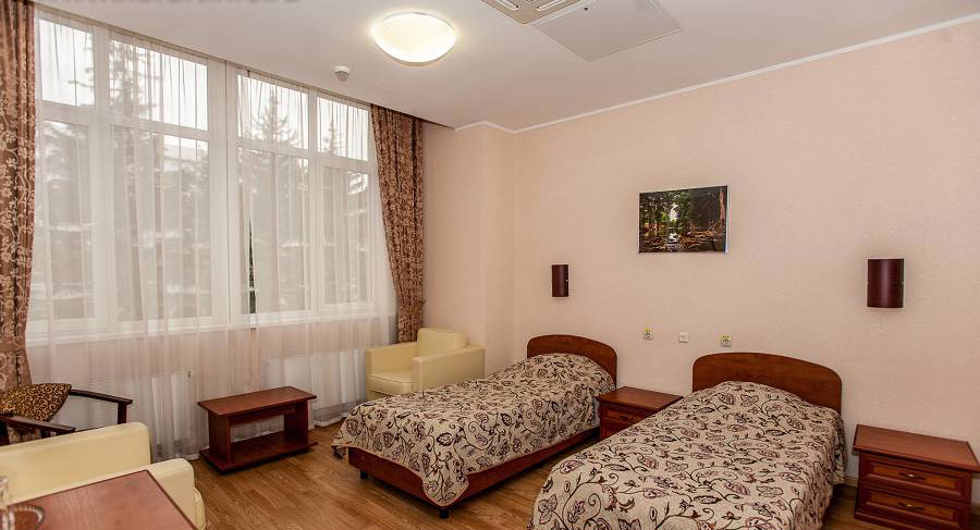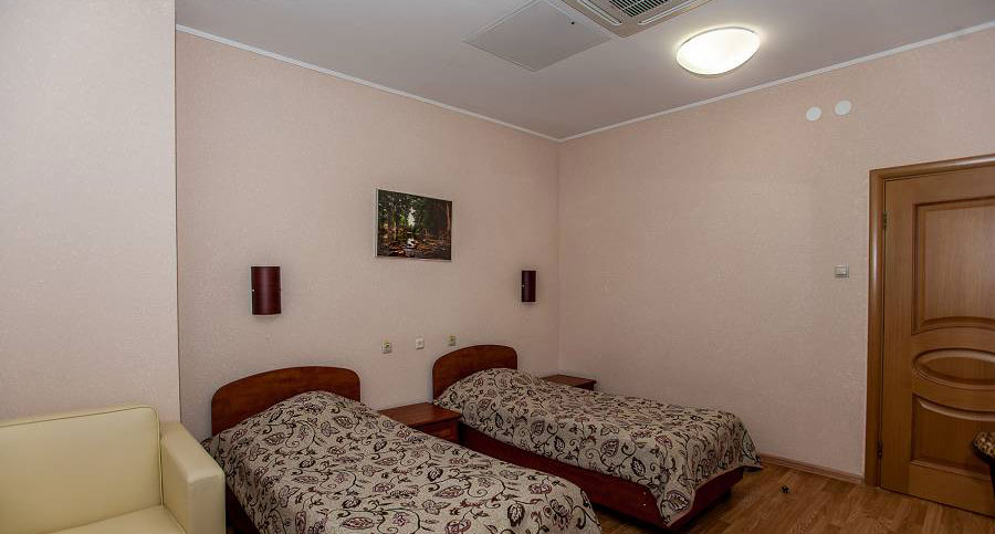 Мебель: кресло, две односпальные кровати (90*200 см), прикроватные тумбочки, столик журнальный, стулья, шкаф.