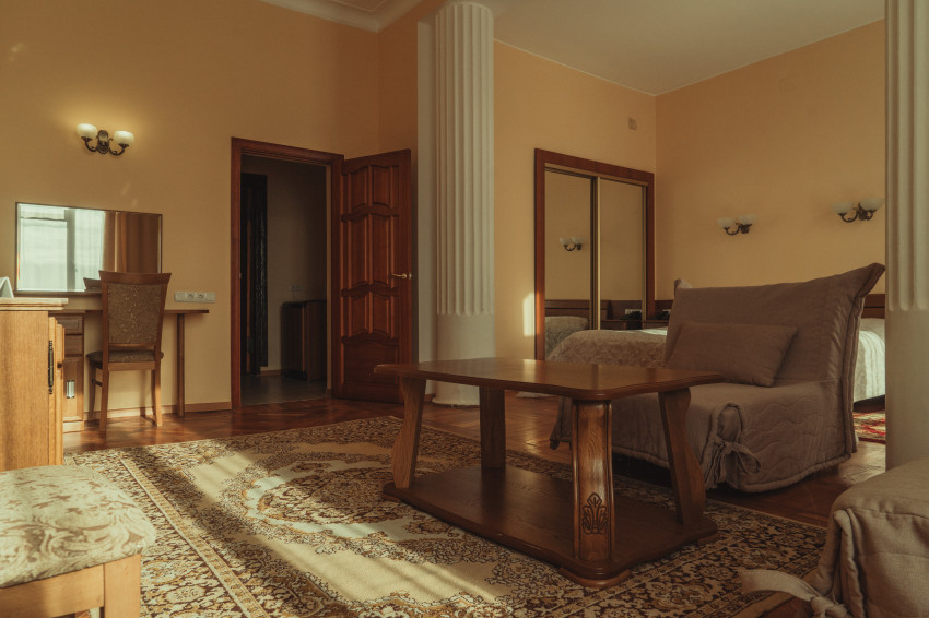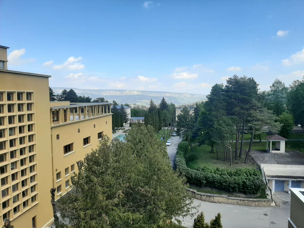 Уютные номера после ремонта. Вид потрясающий на Эльбрус. Расположение прямо у парка. Удобно. Вкусное питание, щедрые порции. Внимательный персонал, гибкость со временем процедур. Много процедур идет в путёвке!