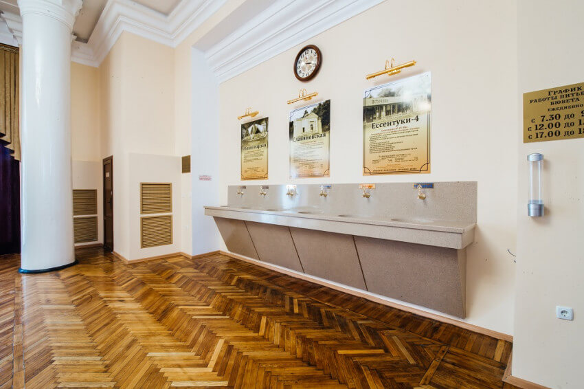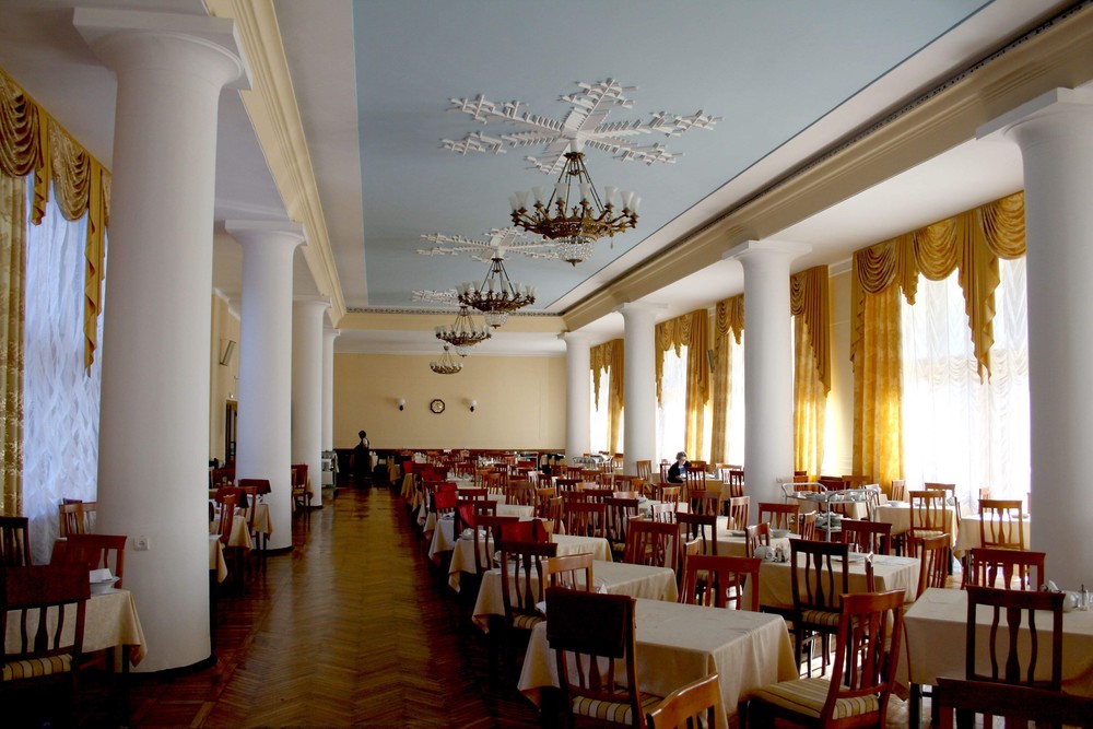 Санаторий буквально граничит с Кисловодским парком. Гулять по терренкурам одно удовольствие, воздух невероятный. Питаемся в столовой рядом с бюветом, еда вкусная и разнообразная, порции хорошие, всегда выходила сытой по полной. Официанты приветливые, с юмором)