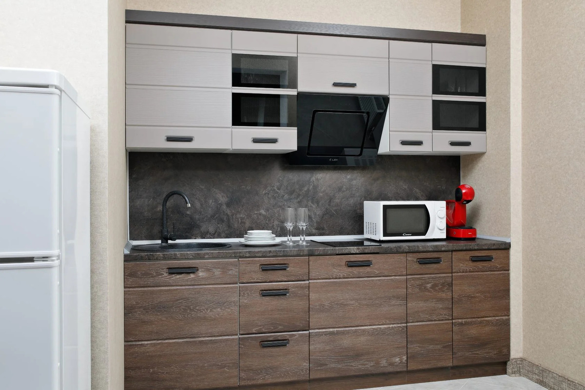 Оборудование: кондиционер, кофемашина, микроволновая печь, набор посуды, сейф, телевизор ЖК, холодильник, электрочайник.